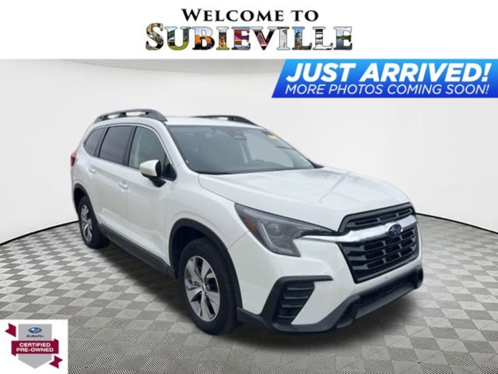 Subaru Certified Pre-Owned Certified, 3rd row seats: bench, 4-Wheel Disc Brakes, 6 Speakers, ABS brakes, Air Conditioning, Alloy wheels, AM/FM radio: SiriusXM, Auto High-beam Headlights, Auto-Dimming Rear View Compass Mirror w/HomeLink, Automatic temperature control, Axle Ratio: 4.44, Brake assist, Bumpers: body-color, Convenience Package, Delay-off headlights, Driver door bin, Driver vanity mirror, Dual front impact airbags, Dual front side impact airbags, Electronic Stability Control, Emergency communication system: STARLINK Safety and Security (Subscription Required), Exterior Parking Camera Rear, Four wheel independent suspension, Front anti-roll bar, Front Bucket Seats, Front Center Armrest, Front dual zone A/C, Front reading lights, Fully automatic headlights, Heated door mirrors, Heated Front Bucket Seats, Heated front seats, Illuminated entry, Keyless Access w/Push-Button Start, Knee airbag, Leather Shift Knob, Leather steering wheel, Low tire pressure warning, Occupant sensing airbag, Outside temperature display, Overhead airbag, Overhead console, Panic alarm, Passenger door bin, Passenger vanity mirror, Power door mirrors, Power driver seat, Power Rear Gate w/Automatic Close & Height Memory, Power steering, Power windows, Radio data system, Radio: Subaru STARLINK 11.6" Multimedia Plus System, Rear air conditioning, Rear anti-roll bar, Rear reading lights, Rear window defroster, Rear window wiper, Reclining 3rd row seat, Remote keyless entry, Reverse Automatic Braking (RAB) System, Security system, Speed control, Speed-sensing steering, Spill Resistant Coated Cloth Upholstery, Split folding rear seat, Spoiler, STARLINK/Apple CarPlay/Android Auto, Steering wheel mounted audio controls, Tachometer, Telescoping steering wheel, Tilt steering wheel, Traction control, Trip computer, Turn signal indicator mirrors, Variably intermittent wipers, Wheels: 18" x 7.5 J Gray Alloy w/Machine Finish.