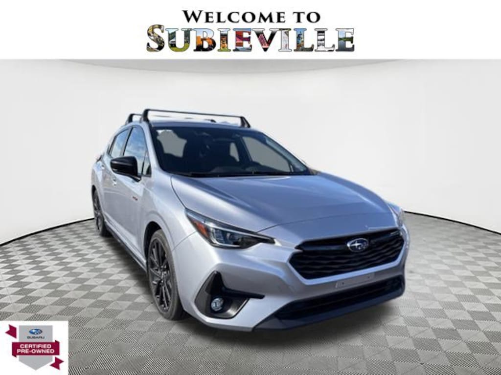 Subaru Certified Pre-Owned Certified, 10-Way Power Driver's Seat, All-Weather Floor Liners, Auto-Dimming Exterior Mirror w/Approach Light, Auto-Dimming Mirror w/Compass & HomeLink, Automatic temperature control, Emergency communication system: STARLINK Safety and Security (Subscription Required), Exterior Parking Camera Rear, Fully automatic headlights, H/K Audio & Power Moonroof & Power Driver Seat, harman/kardon Speaker System, Popular Package #1, Power Moonroof, Radio: Subaru STARLINK 11.6" Multimedia Plus Sys, Rear Bumper Applique, Security system, STARLINK/Apple CarPlay/Android Auto, Wheels: 18" x 7.0" Dark Gray Aluminum-Alloy, 4-Wheel Disc Brakes, 6 Speakers, ABS brakes, Air Conditioning, Alloy wheels, AM/FM radio: SiriusXM, Anti-whiplash front head restraints, Auto High-beam Headlights, Brake assist, Bumpers: body-color, Driver door bin, Driver vanity mirror, Dual front impact airbags, Dual front side impact airbags, Electronic Stability Control, Fixed Crossbar Set, Four wheel independent suspension, Front anti-roll bar, Front Bucket Seats, Front Center Armrest, Front dual zone A/C, Front fog lights, Front reading lights, Heated door mirrors, Heated Front Bucket Seats, Heated front seats, Illuminated entry, Knee airbag, Leather Shift Knob, Low tire pressure warning, Occupant sensing airbag, Outside temperature display, Overhead airbag, Overhead console, Panic alarm, Passenger door bin, Passenger vanity mirror, Power door mirrors, Power steering, Power windows, Radio data system, Rear anti-roll bar, Rear seat center armrest, Rear window defroster, Rear window wiper, Remote keyless entry, RS Cloth Upholstery, Speed control, Speed-sensing steering, Split folding rear seat, Spoiler, Steering wheel mounted audio controls, Tachometer, Telescoping steering wheel, Tilt steering wheel, Traction control, Trip computer, Turn signal indicator mirrors, Variably intermittent wipers, 10-Way Power Driver's Seat, All-Weather Floor Liners, Auto-Dimming Exterior Mirror w/Approach Light, Auto-Dimming Mirror w/Compass & HomeLink, Automatic temperature control, Emergency communication system: STARLINK Safety and Security (Subscription Required), Exterior Parking Camera Rear, Fully automatic headlights, H/K Audio & Power Moonroof & Power Driver Seat, harman/kardon Speaker System, Popular Package #1, Power Moonroof, Radio: Subaru STARLINK 11.6" Multimedia Plus Sys, Rear Bumper Applique, Security system, STARLINK/Apple CarPlay/Android Auto, Wheels: 18" x 7.0" Dark Gray Aluminum-Alloy.