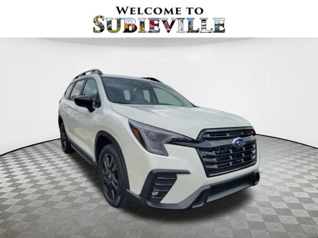 2025 Subaru Ascent Onyx Edition Touring Crystal White Pearl 14 Speakers, 3rd row seats: bench, 4-Wheel Disc Brakes, ABS brakes, Air Conditioning, Alloy wheels, Auto High-beam Headlights, Auto-dimming Rear-View mirror, Automatic temperature control, Brake assist, Bumpers: body-color, Compass, Delay-off headlights, Driver door bin, Driver vanity mirror, Dual front impact airbags, Dual front side impact airbags, Electronic Stability Control, Exterior Parking Camera Rear, Four wheel independent suspension, Front anti-roll bar, Front Bucket Seats, Front Center Armrest, Front dual zone A/C, Front fog lights, Front reading lights, Fully automatic headlights, Garage door transmitter: HomeLink, harman/kardon® Speakers, Heated & Ventilated Front Bucket Seats, Heated door mirrors, Heated front seats, Heated rear seats, Heated steering wheel, HVAC memory, Illuminated entry, Knee airbag, Leather Shift Knob, Leather steering wheel, Low tire pressure warning, Memory seat, Navigation System, Occupant sensing airbag, Outside temperature display, Overhead airbag, Overhead console, Panic alarm, Passenger door bin, Passenger vanity mirror, Perforated Nappa Leather-Trimmed Upholstery, Power door mirrors, Power driver seat, Power Liftgate, Power moonroof, Power passenger seat, Power steering, Power windows, Radio data system, Rain sensing wipers, Rear air conditioning, Rear anti-roll bar, Rear reading lights, Rear window defroster, Rear window wiper, Reclining 3rd row seat, Remote keyless entry, Security system, Speed control, Speed-sensing steering, Split folding rear seat, Spoiler, Steering wheel mounted audio controls, Tachometer, Telescoping steering wheel, Tilt steering wheel, Traction control, Trip computer, Turn signal indicator mirrors, Variably intermittent wipers, Ventilated front seats, Wheels: 20" x 7.5 J Aluminum Alloy w/Black Finish. AWD Lineartronic CVT 2.4L 4-Cylinder DOHC 16V