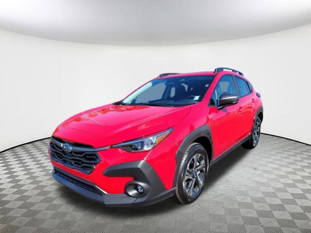 2025 Subaru Crosstrek Premium Pure Red 4-Wheel Disc Brakes, 6 Speakers, ABS brakes, Air Conditioning, Alloy wheels, AM/FM radio: SiriusXM, Anti-whiplash front head restraints, Auto High-beam Headlights, Automatic temperature control, Brake assist, Bumpers: body-color, Cloth Upholstery, Driver door bin, Driver vanity mirror, Dual front impact airbags, Dual front side impact airbags, Electronic Stability Control, Emergency communication system, Exterior Parking Camera Rear, Four wheel independent suspension, Front anti-roll bar, Front Bucket Seats, Front Center Armrest, Front dual zone A/C, Front fog lights, Front reading lights, Fully automatic headlights, Illuminated entry, Knee airbag, Low tire pressure warning, Occupant sensing airbag, Outside temperature display, Overhead airbag, Overhead console, Panic alarm, Passenger door bin, Passenger vanity mirror, Power door mirrors, Power steering, Power windows, Radio data system, Radio: Subaru 11.6" Multimedia Plus System, Rear anti-roll bar, Rear seat center armrest, Rear window defroster, Rear window wiper, Remote keyless entry, Security system, Speed control, Speed-sensing steering, Split folding rear seat, Spoiler, Steering wheel mounted audio controls, Tachometer, Telescoping steering wheel, Tilt steering wheel, Traction control, Trip computer, Turn signal indicator mirrors, Variably intermittent wipers, Wheels: 17" x 7.0" J Machine Finish Aluminum-Alloy. AWD Lineartronic CVT 27/33 City/Highway MPG 2.5L 4-Cylinder DOHC 16V