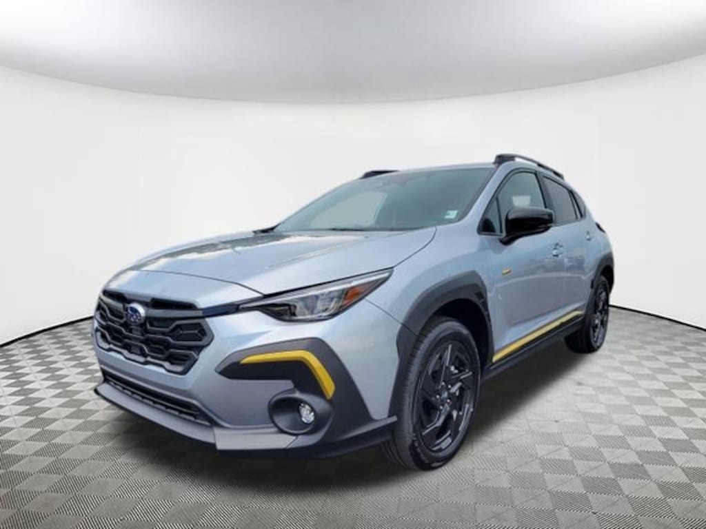2025 Subaru Crosstrek Sport Ice Silver 4-Wheel Disc Brakes, 6 Speakers, ABS brakes, Air Conditioning, Alloy wheels, AM/FM radio: SiriusXM, Anti-whiplash front head restraints, Auto High-beam Headlights, Automatic temperature control, Brake assist, Bumpers: body-color, Driver door bin, Driver vanity mirror, Dual front impact airbags, Dual front side impact airbags, Electronic Stability Control, Exterior Parking Camera Rear, Four wheel independent suspension, Front anti-roll bar, Front Bucket Seats, Front Center Armrest, Front dual zone A/C, Front fog lights, Front reading lights, Fully automatic headlights, Heated door mirrors, Heated Front Bucket Seats, Heated front seats, Illuminated entry, Knee airbag, Leather Shift Knob, Leather steering wheel, Low tire pressure warning, Occupant sensing airbag, Outside temperature display, Overhead airbag, Overhead console, Panic alarm, Passenger door bin, Passenger vanity mirror, Power door mirrors, Power steering, Power windows, Radio data system, Rear anti-roll bar, Rear seat center armrest, Rear window defroster, Rear window wiper, Remote keyless entry, Security system, Speed control, Speed-sensing steering, Split folding rear seat, Spoiler, Sport Cloth Upholstery, Steering wheel mounted audio controls, Tachometer, Telescoping steering wheel, Tilt steering wheel, Traction control, Trip computer, Turn signal indicator mirrors, Variably intermittent wipers, Wheels: 18" x 7.0" J Dark Gray Aluminum-Alloy. AWD Lineartronic CVT 27/33 City/Highway MPG 2.5L 4-Cylinder DOHC 16V