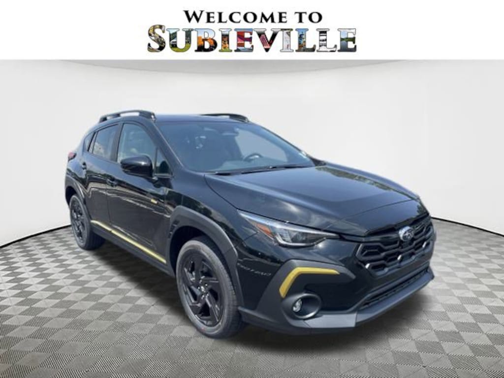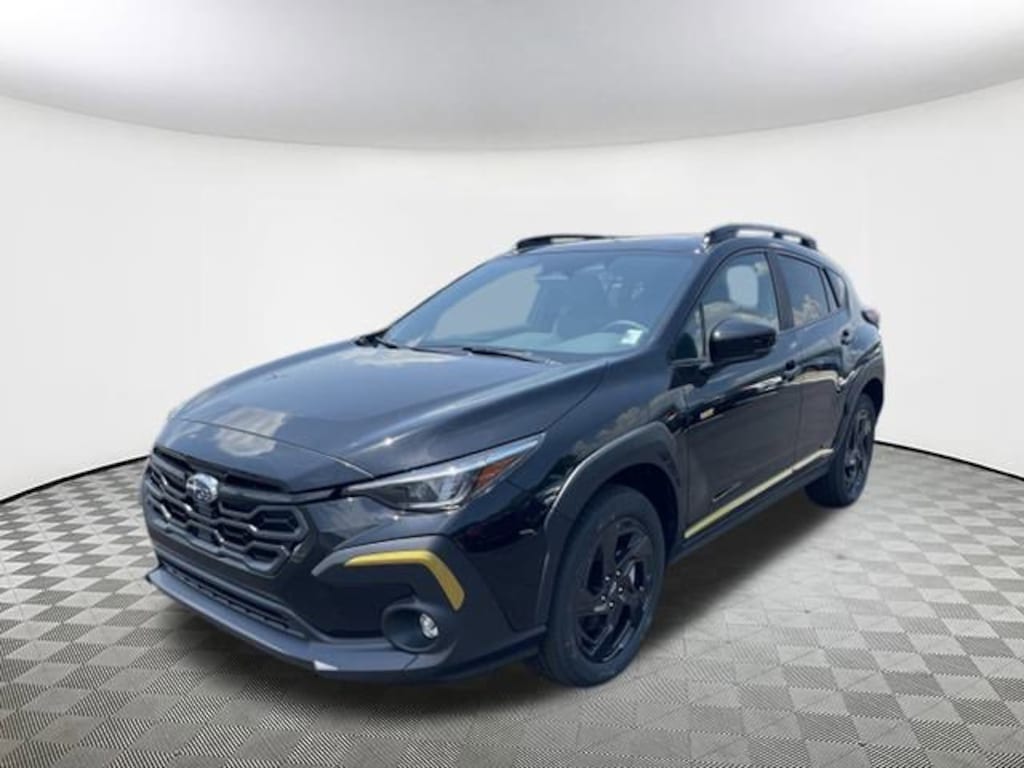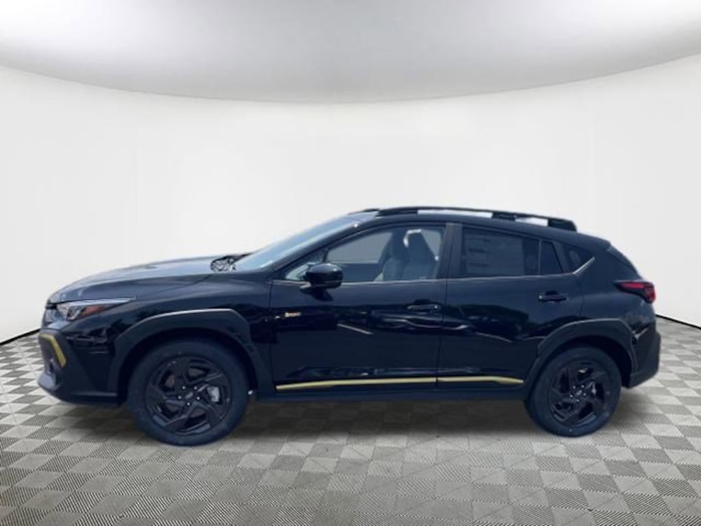 2025 Subaru Crosstrek Sport Crystal Black Silica 10-Way Power Driver's Seat, 4-Wheel Disc Brakes, 6 Speakers, ABS brakes, Air Conditioning, All-Weather Floor Liners, Alloy wheels, AM/FM radio: SiriusXM, Anti-whiplash front head restraints, Auto High-beam Headlights, Auto-Dimming Exterior Mirror w/Approach Light, Auto-Dimming Mirror w/Compass & HomeLink, Automatic temperature control, Blind Spot Detection (BSD), Brake assist, BSD/RCTA & Power Driver Seat & Power Moonroof, Bumpers: body-color, Driver door bin, Driver vanity mirror, Dual front impact airbags, Dual front side impact airbags, Electronic Stability Control, Exterior Parking Camera Rear, Four wheel independent suspension, Front anti-roll bar, Front Bucket Seats, Front Center Armrest, Front dual zone A/C, Front fog lights, Front reading lights, Fully automatic headlights, Heated door mirrors, Heated Front Bucket Seats, Heated front seats, Illuminated entry, Knee airbag, Leather Shift Knob, Leather steering wheel, LED Upgrade, Low tire pressure warning, Occupant sensing airbag, Outside temperature display, Overhead airbag, Overhead console, Panic alarm, Passenger door bin, Passenger vanity mirror, Power door mirrors, Power Moonroof, Power steering, Power windows, Radio data system, Rear anti-roll bar, Rear Bumper Cover, Rear Cross-Traffic Alert (RCTA) System, Rear seat center armrest, Rear Seatback Protector, Rear window defroster, Rear window wiper, Remote keyless entry, Security system, Speed control, Speed-sensing steering, Split folding rear seat, Spoiler, Sport Cloth Upholstery, Steering wheel mounted audio controls, Tachometer, Telescoping steering wheel, Tilt steering wheel, Traction control, Trip computer, Turn signal indicator mirrors, Variably intermittent wipers, Wheels: 18" x 7.0" J Dark Gray Aluminum-Alloy. AWD Lineartronic CVT 27/33 City/Highway MPG 2.5L 4-Cylinder DOHC 16V