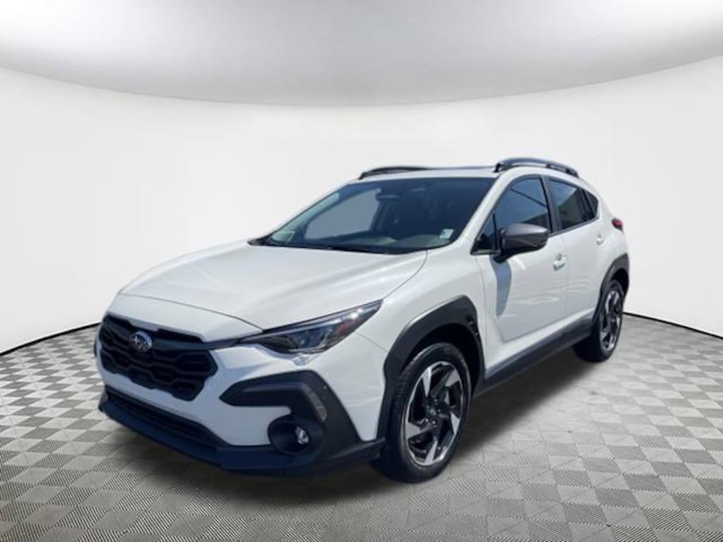 2025 Subaru Crosstrek Limited Crystal White Pearl 4-Wheel Disc Brakes, 6 Speakers, ABS brakes, Air Conditioning, Alloy wheels, AM/FM radio: SiriusXM, Anti-whiplash front head restraints, Auto High-beam Headlights, Automatic temperature control, Brake assist, Bumpers: body-color, Driver door bin, Driver vanity mirror, Dual front impact airbags, Dual front side impact airbags, Electronic Stability Control, Exterior Parking Camera Rear, Four wheel independent suspension, Front anti-roll bar, Front Bucket Seats, Front Center Armrest, Front dual zone A/C, Front fog lights, Front reading lights, Fully automatic headlights, Heated door mirrors, Heated Front Bucket Seats, Heated front seats, Illuminated entry, Knee airbag, Leather Shift Knob, Leather steering wheel, Leather-Trimmed Upholstery, Low tire pressure warning, Occupant sensing airbag, Outside temperature display, Overhead airbag, Overhead console, Panic alarm, Passenger door bin, Passenger vanity mirror, Power door mirrors, Power driver seat, Power steering, Power windows, Radio data system, Rear anti-roll bar, Rear seat center armrest, Rear window defroster, Rear window wiper, Remote keyless entry, Security system, Speed control, Speed-sensing steering, Split folding rear seat, Spoiler, Steering wheel mounted audio controls, Tachometer, Telescoping steering wheel, Tilt steering wheel, Traction control, Trip computer, Turn signal indicator mirrors, Variably intermittent wipers, Wheels: 18" x 7.0" J Machine Finish Aluminum-Alloy. AWD Lineartronic CVT 27/33 City/Highway MPG 2.5L 4-Cylinder DOHC 16V