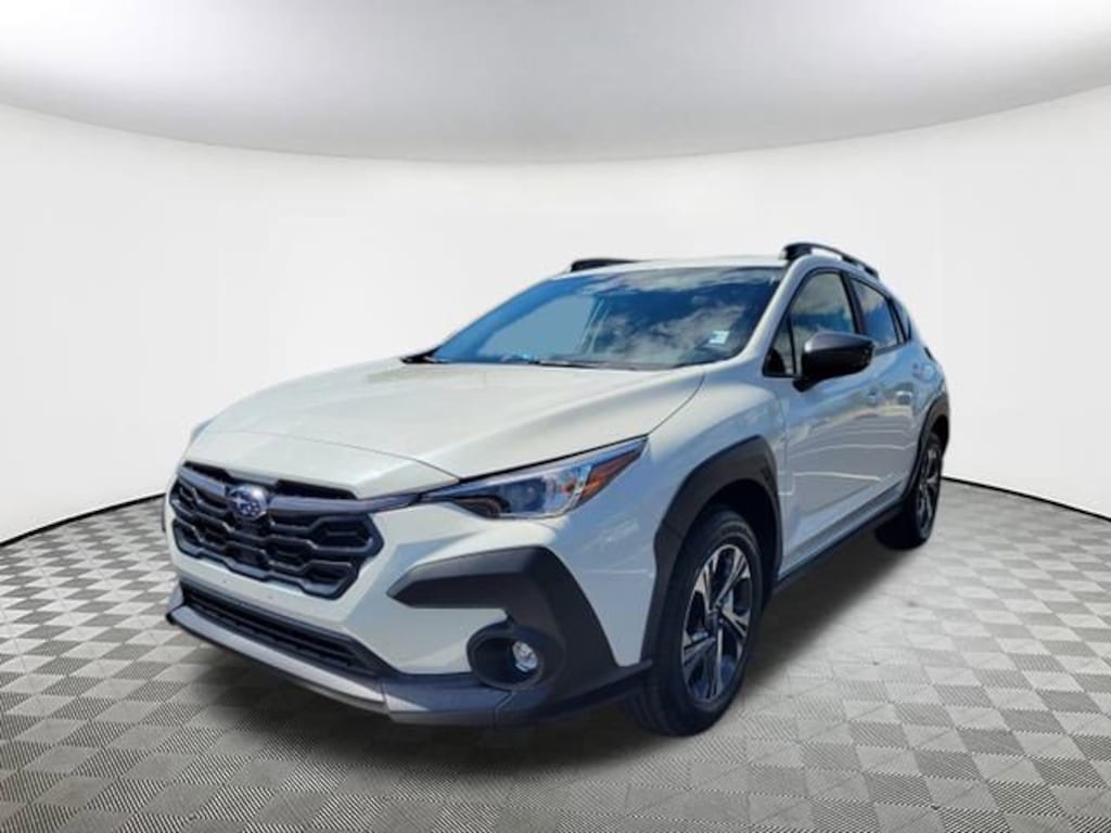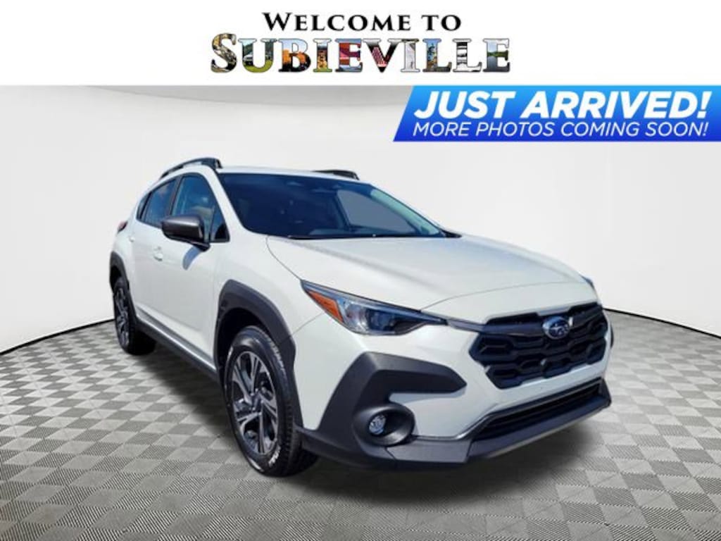 2025 Subaru Crosstrek Premium Crystal White Pearl 4-Wheel Disc Brakes, 6 Speakers, ABS brakes, Air Conditioning, Alloy wheels, AM/FM radio: SiriusXM, Anti-whiplash front head restraints, Auto High-beam Headlights, Automatic temperature control, Brake assist, Bumpers: body-color, Cloth Upholstery, Driver door bin, Driver vanity mirror, Dual front impact airbags, Dual front side impact airbags, Electronic Stability Control, Exterior Parking Camera Rear, Four wheel independent suspension, Front anti-roll bar, Front Bucket Seats, Front Center Armrest, Front dual zone A/C, Front fog lights, Front reading lights, Fully automatic headlights, Illuminated entry, Knee airbag, Low tire pressure warning, Occupant sensing airbag, Outside temperature display, Overhead airbag, Overhead console, Panic alarm, Passenger door bin, Passenger vanity mirror, Power door mirrors, Power steering, Power windows, Radio data system, Rear anti-roll bar, Rear seat center armrest, Rear window defroster, Rear window wiper, Remote keyless entry, Security system, Speed control, Speed-sensing steering, Split folding rear seat, Spoiler, Steering wheel mounted audio controls, Tachometer, Telescoping steering wheel, Tilt steering wheel, Traction control, Trip computer, Turn signal indicator mirrors, Variably intermittent wipers, Wheels: 17" x 7.0" J Machine Finish Aluminum-Alloy. AWD Lineartronic CVT 27/33 City/Highway MPG 2.5L 4-Cylinder DOHC 16V