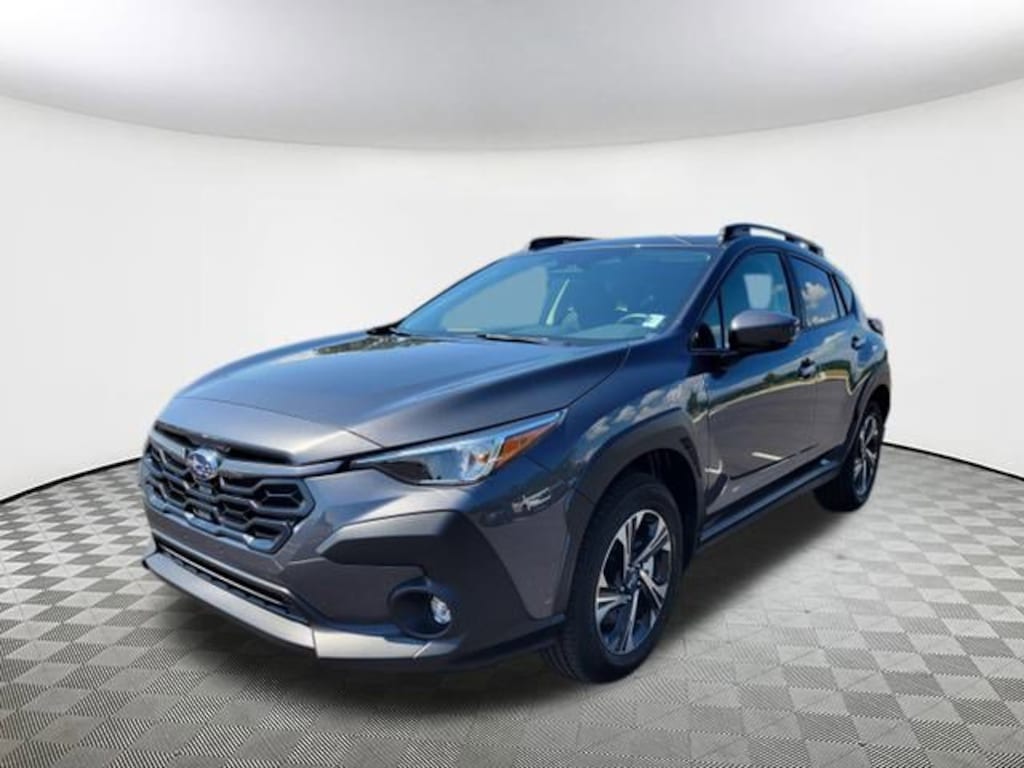 2025 Subaru Crosstrek Premium Magnetite Gray Metallic 4-Wheel Disc Brakes, 6 Speakers, ABS brakes, Air Conditioning, Alloy wheels, AM/FM radio: SiriusXM, Anti-whiplash front head restraints, Auto High-beam Headlights, Automatic temperature control, Brake assist, Bumpers: body-color, Cloth Upholstery, Driver door bin, Driver vanity mirror, Dual front impact airbags, Dual front side impact airbags, Electronic Stability Control, Exterior Parking Camera Rear, Four wheel independent suspension, Front anti-roll bar, Front Bucket Seats, Front Center Armrest, Front dual zone A/C, Front fog lights, Front reading lights, Fully automatic headlights, Illuminated entry, Knee airbag, Low tire pressure warning, Occupant sensing airbag, Outside temperature display, Overhead airbag, Overhead console, Panic alarm, Passenger door bin, Passenger vanity mirror, Power door mirrors, Power steering, Power windows, Radio data system, Rear anti-roll bar, Rear seat center armrest, Rear window defroster, Rear window wiper, Remote keyless entry, Security system, Speed control, Speed-sensing steering, Split folding rear seat, Spoiler, Steering wheel mounted audio controls, Tachometer, Telescoping steering wheel, Tilt steering wheel, Traction control, Trip computer, Turn signal indicator mirrors, Variably intermittent wipers, Wheels: 17" x 7.0" J Machine Finish Aluminum-Alloy. AWD Lineartronic CVT 27/33 City/Highway MPG 2.5L 4-Cylinder DOHC 16V