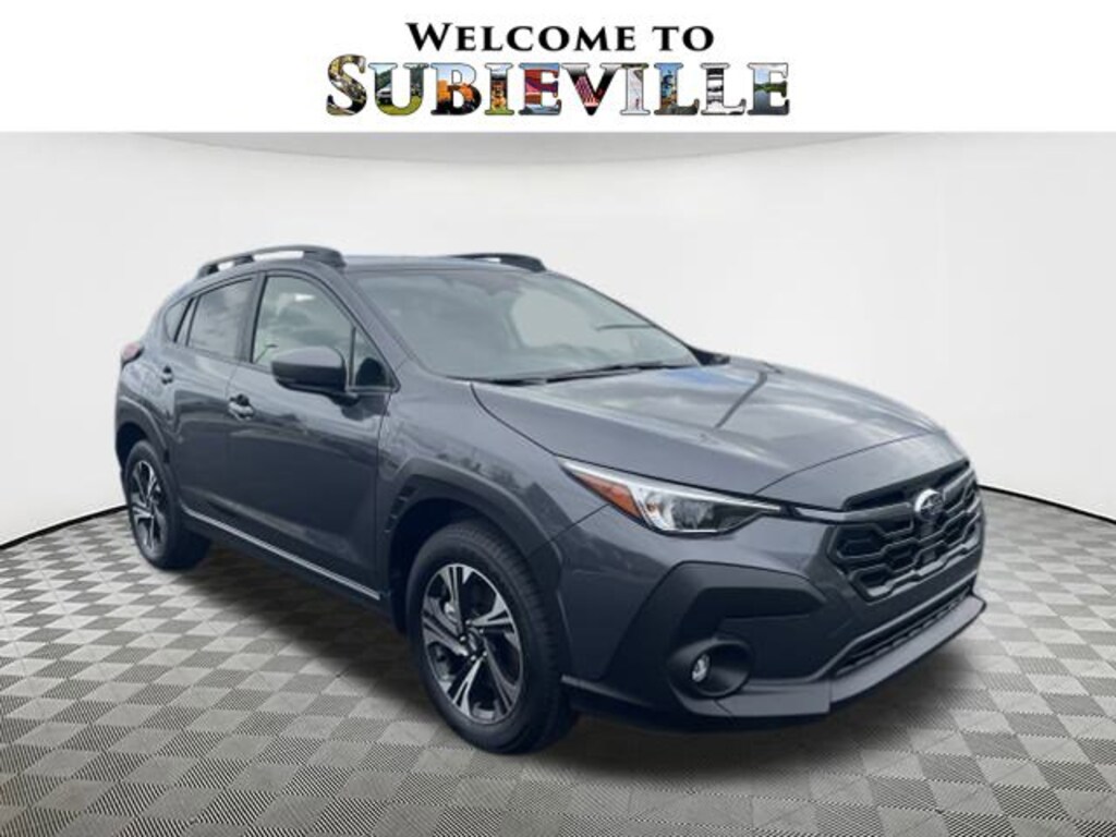 2025 Subaru Crosstrek Premium Magnetite Gray Metallic 4-Wheel Disc Brakes, 6 Speakers, ABS brakes, Air Conditioning, Alloy wheels, AM/FM radio: SiriusXM, Anti-whiplash front head restraints, Auto High-beam Headlights, Automatic temperature control, Brake assist, Bumpers: body-color, Cloth Upholstery, Driver door bin, Driver vanity mirror, Dual front impact airbags, Dual front side impact airbags, Electronic Stability Control, Emergency communication system, Exterior Parking Camera Rear, Four wheel independent suspension, Front anti-roll bar, Front Bucket Seats, Front Center Armrest, Front dual zone A/C, Front fog lights, Front reading lights, Fully automatic headlights, Illuminated entry, Knee airbag, Low tire pressure warning, Occupant sensing airbag, Outside temperature display, Overhead airbag, Overhead console, Panic alarm, Passenger door bin, Passenger vanity mirror, Power door mirrors, Power steering, Power windows, Radio data system, Radio: Subaru 11.6" Multimedia Plus System, Rear anti-roll bar, Rear seat center armrest, Rear window defroster, Rear window wiper, Remote keyless entry, Security system, Speed control, Speed-sensing steering, Split folding rear seat, Spoiler, Steering wheel mounted audio controls, Tachometer, Telescoping steering wheel, Tilt steering wheel, Traction control, Trip computer, Turn signal indicator mirrors, Variably intermittent wipers, Wheels: 17" x 7.0" J Machine Finish Aluminum-Alloy. AWD Lineartronic CVT 27/33 City/Highway MPG 2.5L 4-Cylinder DOHC 16V