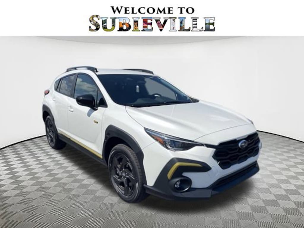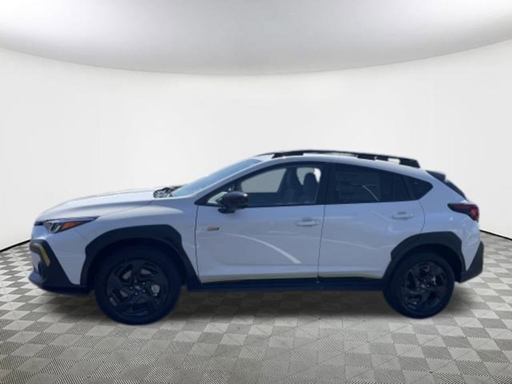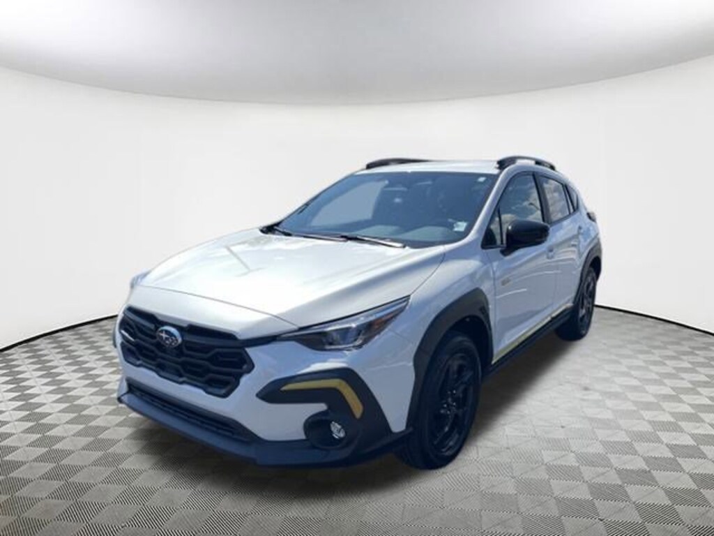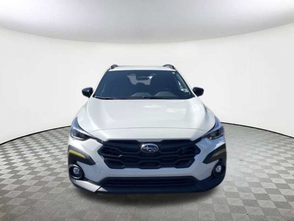2025 Subaru Crosstrek Sport White 4-Wheel Disc Brakes, 6 Speakers, ABS brakes, Air Conditioning, Alloy wheels, AM/FM radio: SiriusXM, Anti-whiplash front head restraints, Auto High-beam Headlights, Automatic temperature control, Brake assist, Bumpers: body-color, Driver door bin, Driver vanity mirror, Dual front impact airbags, Dual front side impact airbags, Electronic Stability Control, Exterior Parking Camera Rear, Four wheel independent suspension, Front anti-roll bar, Front Bucket Seats, Front Center Armrest, Front dual zone A/C, Front fog lights, Front reading lights, Fully automatic headlights, Heated door mirrors, Heated Front Bucket Seats, Heated front seats, Illuminated entry, Knee airbag, Leather Shift Knob, Leather steering wheel, Low tire pressure warning, Occupant sensing airbag, Outside temperature display, Overhead airbag, Overhead console, Panic alarm, Passenger door bin, Passenger vanity mirror, Power door mirrors, Power steering, Power windows, Radio data system, Rear anti-roll bar, Rear seat center armrest, Rear window defroster, Rear window wiper, Remote keyless entry, Security system, Speed control, Speed-sensing steering, Split folding rear seat, Spoiler, Sport Cloth Upholstery, Steering wheel mounted audio controls, Tachometer, Telescoping steering wheel, Tilt steering wheel, Traction control, Trip computer, Turn signal indicator mirrors, Variably intermittent wipers, Wheels: 18" x 7.0" J Dark Gray Aluminum-Alloy. AWD Lineartronic CVT 27/33 City/Highway MPG 2.5L 4-Cylinder DOHC 16V