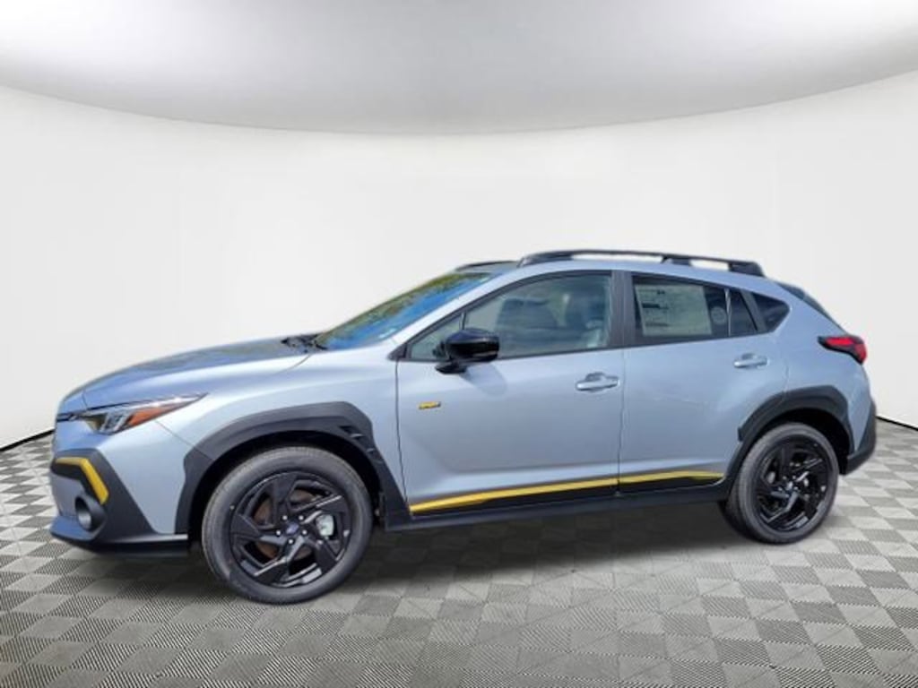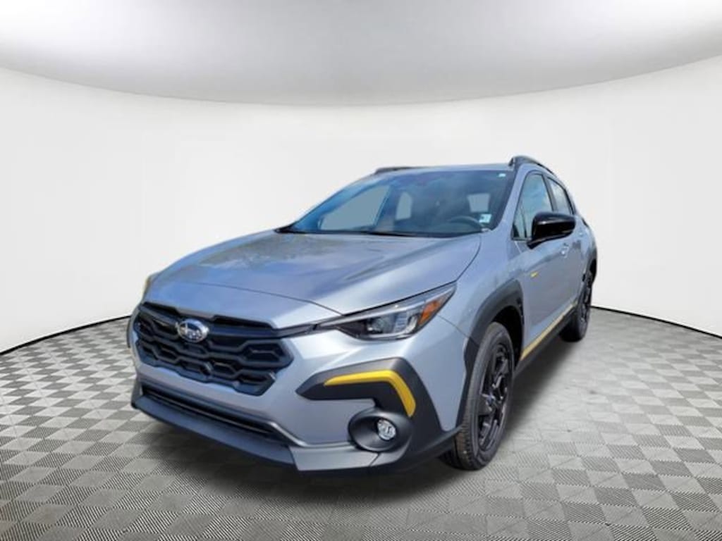 2025 Subaru Crosstrek Sport Ice Silver Metallic 4-Wheel Disc Brakes, 6 Speakers, ABS brakes, Air Conditioning, Alloy wheels, AM/FM radio: SiriusXM, Anti-whiplash front head restraints, Auto High-beam Headlights, Automatic temperature control, Brake assist, Bumpers: body-color, Driver door bin, Driver vanity mirror, Dual front impact airbags, Dual front side impact airbags, Electronic Stability Control, Exterior Parking Camera Rear, Four wheel independent suspension, Front anti-roll bar, Front Bucket Seats, Front Center Armrest, Front dual zone A/C, Front fog lights, Front reading lights, Fully automatic headlights, Heated door mirrors, Heated Front Bucket Seats, Heated front seats, Illuminated entry, Knee airbag, Leather Shift Knob, Leather steering wheel, Low tire pressure warning, Occupant sensing airbag, Outside temperature display, Overhead airbag, Overhead console, Panic alarm, Passenger door bin, Passenger vanity mirror, Power door mirrors, Power steering, Power windows, Radio data system, Rear anti-roll bar, Rear seat center armrest, Rear window defroster, Rear window wiper, Remote keyless entry, Security system, Speed control, Speed-sensing steering, Split folding rear seat, Spoiler, Sport Cloth Upholstery, Steering wheel mounted audio controls, Tachometer, Telescoping steering wheel, Tilt steering wheel, Traction control, Trip computer, Turn signal indicator mirrors, Variably intermittent wipers, Wheels: 18" x 7.0" J Dark Gray Aluminum-Alloy. AWD Lineartronic CVT 27/33 City/Highway MPG 2.5L 4-Cylinder DOHC 16V