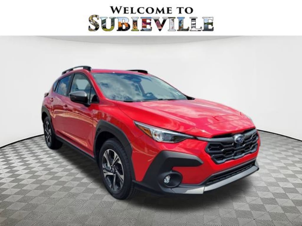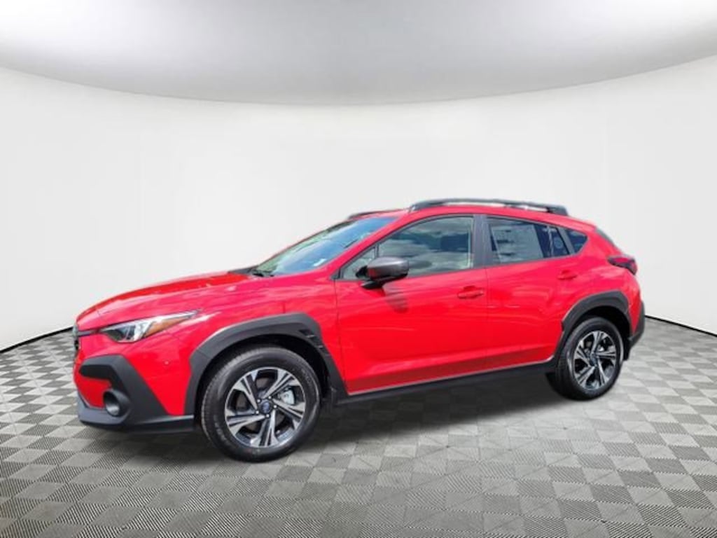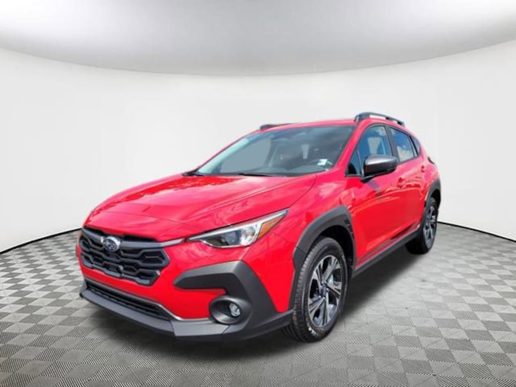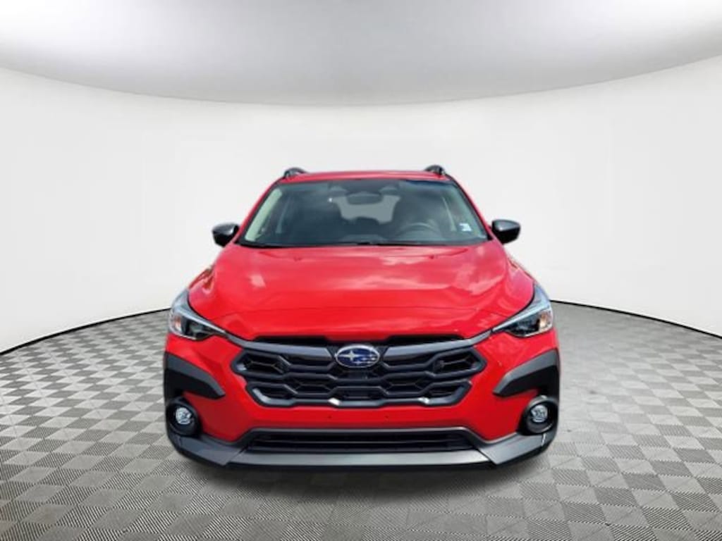 2025 Subaru Crosstrek Premium Pure Red 4-Wheel Disc Brakes, 6 Speakers, ABS brakes, Air Conditioning, Alloy wheels, AM/FM radio: SiriusXM, Anti-whiplash front head restraints, Auto High-beam Headlights, Automatic temperature control, Brake assist, Bumpers: body-color, Cloth Upholstery, Driver door bin, Driver vanity mirror, Dual front impact airbags, Dual front side impact airbags, Electronic Stability Control, Exterior Parking Camera Rear, Four wheel independent suspension, Front anti-roll bar, Front Bucket Seats, Front Center Armrest, Front dual zone A/C, Front fog lights, Front reading lights, Fully automatic headlights, Illuminated entry, Knee airbag, Low tire pressure warning, Occupant sensing airbag, Outside temperature display, Overhead airbag, Overhead console, Panic alarm, Passenger door bin, Passenger vanity mirror, Power door mirrors, Power steering, Power windows, Radio data system, Rear anti-roll bar, Rear seat center armrest, Rear window defroster, Rear window wiper, Remote keyless entry, Security system, Speed control, Speed-sensing steering, Split folding rear seat, Spoiler, Steering wheel mounted audio controls, Tachometer, Telescoping steering wheel, Tilt steering wheel, Traction control, Trip computer, Turn signal indicator mirrors, Variably intermittent wipers, Wheels: 17" x 7.0" J Machine Finish Aluminum-Alloy. AWD Lineartronic CVT 27/33 City/Highway MPG 2.5L 4-Cylinder DOHC 16V