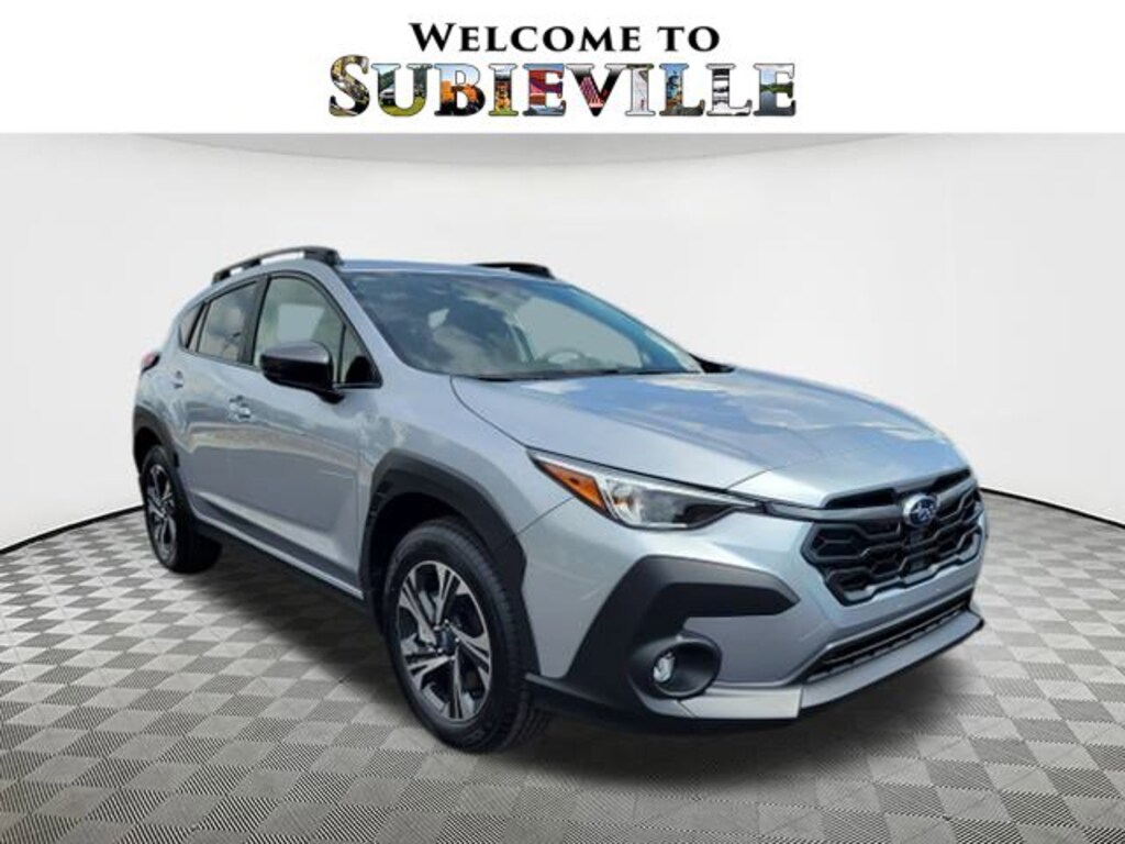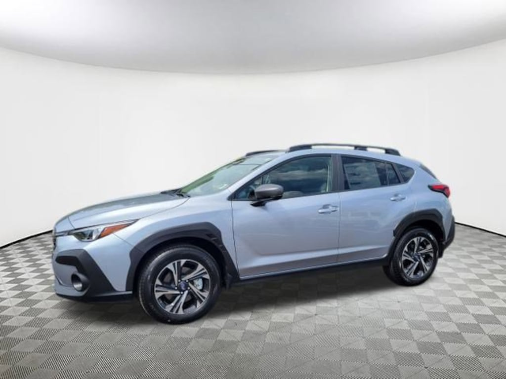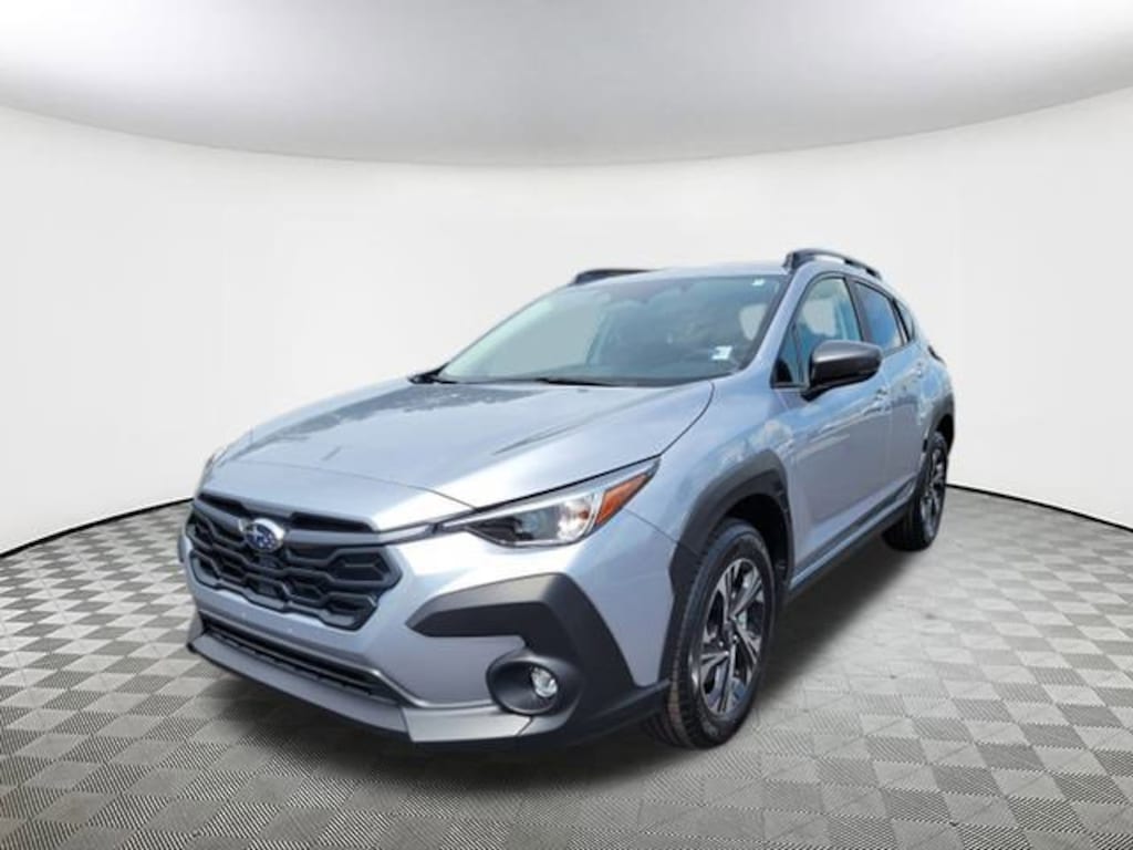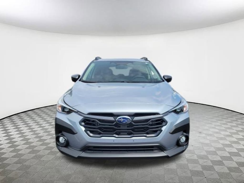 2025 Subaru Crosstrek Premium Ice Silver Metallic 4-Wheel Disc Brakes, 6 Speakers, ABS brakes, Air Conditioning, Alloy wheels, AM/FM radio: SiriusXM, Anti-whiplash front head restraints, Auto High-beam Headlights, Automatic temperature control, Brake assist, Bumpers: body-color, Cloth Upholstery, Driver door bin, Driver vanity mirror, Dual front impact airbags, Dual front side impact airbags, Electronic Stability Control, Exterior Parking Camera Rear, Four wheel independent suspension, Front anti-roll bar, Front Bucket Seats, Front Center Armrest, Front dual zone A/C, Front fog lights, Front reading lights, Fully automatic headlights, Illuminated entry, Knee airbag, Low tire pressure warning, Occupant sensing airbag, Outside temperature display, Overhead airbag, Overhead console, Panic alarm, Passenger door bin, Passenger vanity mirror, Power door mirrors, Power steering, Power windows, Radio data system, Rear anti-roll bar, Rear seat center armrest, Rear window defroster, Rear window wiper, Remote keyless entry, Security system, Speed control, Speed-sensing steering, Split folding rear seat, Spoiler, Steering wheel mounted audio controls, Tachometer, Telescoping steering wheel, Tilt steering wheel, Traction control, Trip computer, Turn signal indicator mirrors, Variably intermittent wipers, Wheels: 17" x 7.0" J Machine Finish Aluminum-Alloy. AWD Lineartronic CVT 27/33 City/Highway MPG 2.5L 4-Cylinder DOHC 16V