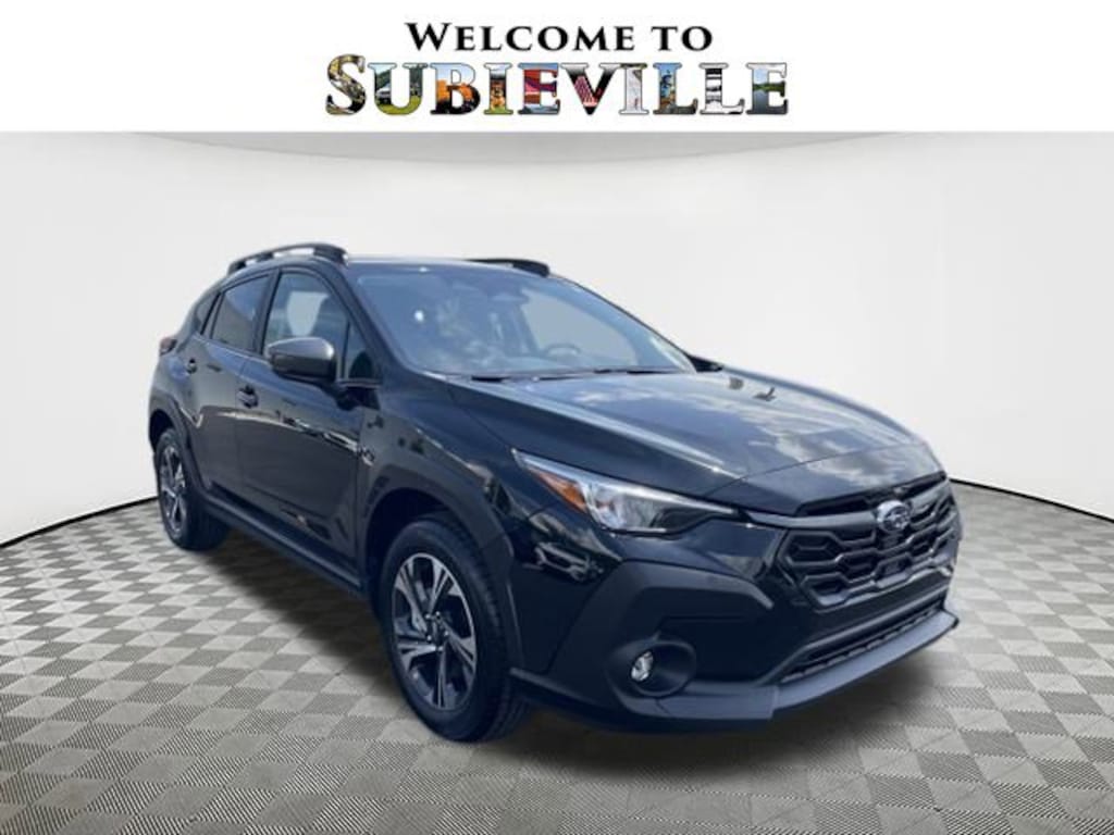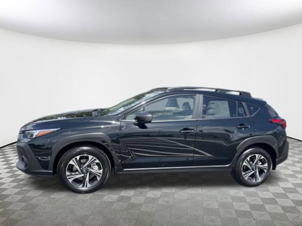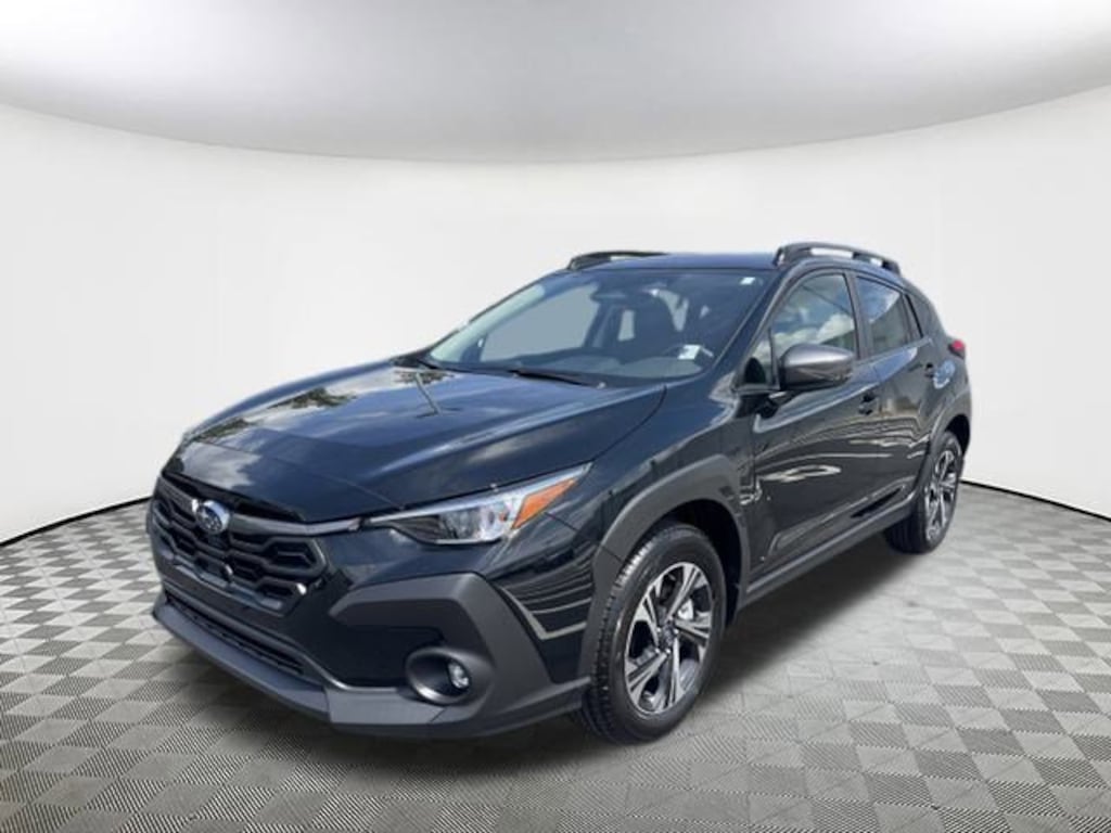 2025 Subaru Crosstrek Premium Black 4-Wheel Disc Brakes, 6 Speakers, ABS brakes, Air Conditioning, Alloy wheels, AM/FM radio: SiriusXM, Anti-whiplash front head restraints, Auto High-beam Headlights, Automatic temperature control, Brake assist, Bumpers: body-color, Cloth Upholstery, Driver door bin, Driver vanity mirror, Dual front impact airbags, Dual front side impact airbags, Electronic Stability Control, Exterior Parking Camera Rear, Four wheel independent suspension, Front anti-roll bar, Front Bucket Seats, Front Center Armrest, Front dual zone A/C, Front fog lights, Front reading lights, Fully automatic headlights, Illuminated entry, Knee airbag, Low tire pressure warning, Occupant sensing airbag, Outside temperature display, Overhead airbag, Overhead console, Panic alarm, Passenger door bin, Passenger vanity mirror, Power door mirrors, Power steering, Power windows, Radio data system, Rear anti-roll bar, Rear seat center armrest, Rear window defroster, Rear window wiper, Remote keyless entry, Security system, Speed control, Speed-sensing steering, Split folding rear seat, Spoiler, Steering wheel mounted audio controls, Tachometer, Telescoping steering wheel, Tilt steering wheel, Traction control, Trip computer, Turn signal indicator mirrors, Variably intermittent wipers, Wheels: 17" x 7.0" J Machine Finish Aluminum-Alloy. AWD Lineartronic CVT 27/33 City/Highway MPG 2.5L 4-Cylinder DOHC 16V