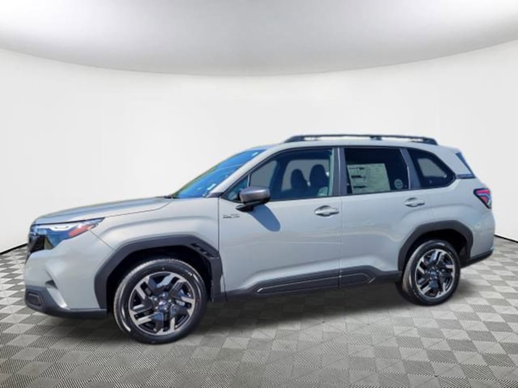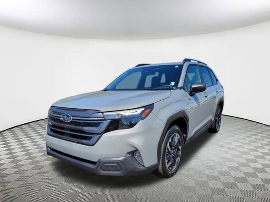 2025 Subaru Forester Hybrid Premium River Rock Pearl 2.5L 4-Cylinder DOHC 16V, 4-Wheel Disc Brakes, 6 Speakers, ABS brakes, Air Conditioning, Alloy wheels, AM/FM radio: SiriusXM with 360L, Anti-whiplash front head restraints, Auto High-beam Headlights, Automatic temperature control, Brake assist, Bumpers: body-color, Compass, Driver door bin, Driver vanity mirror, Dual front impact airbags, Dual front side impact airbags, Electronic Stability Control, Exterior Parking Camera Rear, Four wheel independent suspension, Front anti-roll bar, Front Bucket Seats, Front Center Armrest, Front dual zone A/C, Front fog lights, Front reading lights, Fully automatic headlights, Heated door mirrors, Heated Front Bucket Seats, Heated front seats, Illuminated entry, Knee airbag, Low tire pressure warning, Navigation system: TomTom Navigation w/what3words, Occupant sensing airbag, Outside temperature display, Overhead airbag, Overhead console, Panic alarm, Passenger door bin, Passenger vanity mirror, Power door mirrors, Power driver seat, Power Liftgate, Power moonroof: Panoramic, Power steering, Power windows, Premium Cloth Upholstery, Radio data system, Rear anti-roll bar, Rear seat center armrest, Rear window defroster, Rear window wiper, Remote keyless entry, Security system, Speed control, Speed-sensing steering, Split folding rear seat, Spoiler, Standard Model, Steering wheel mounted audio controls, Tachometer, Telescoping steering wheel, Tilt steering wheel, Traction control, Trip computer, Variably intermittent wipers, Wheels: 18" x 7.0 J Dark Metallic Aluminum-Alloy, 2.5L 4-Cylinder DOHC 16V. AWD Lineartronic CVT 35/34 City/Highway MPG 2.5L 4-Cylinder DOHC 16V