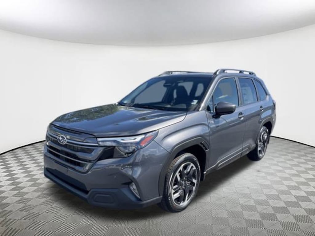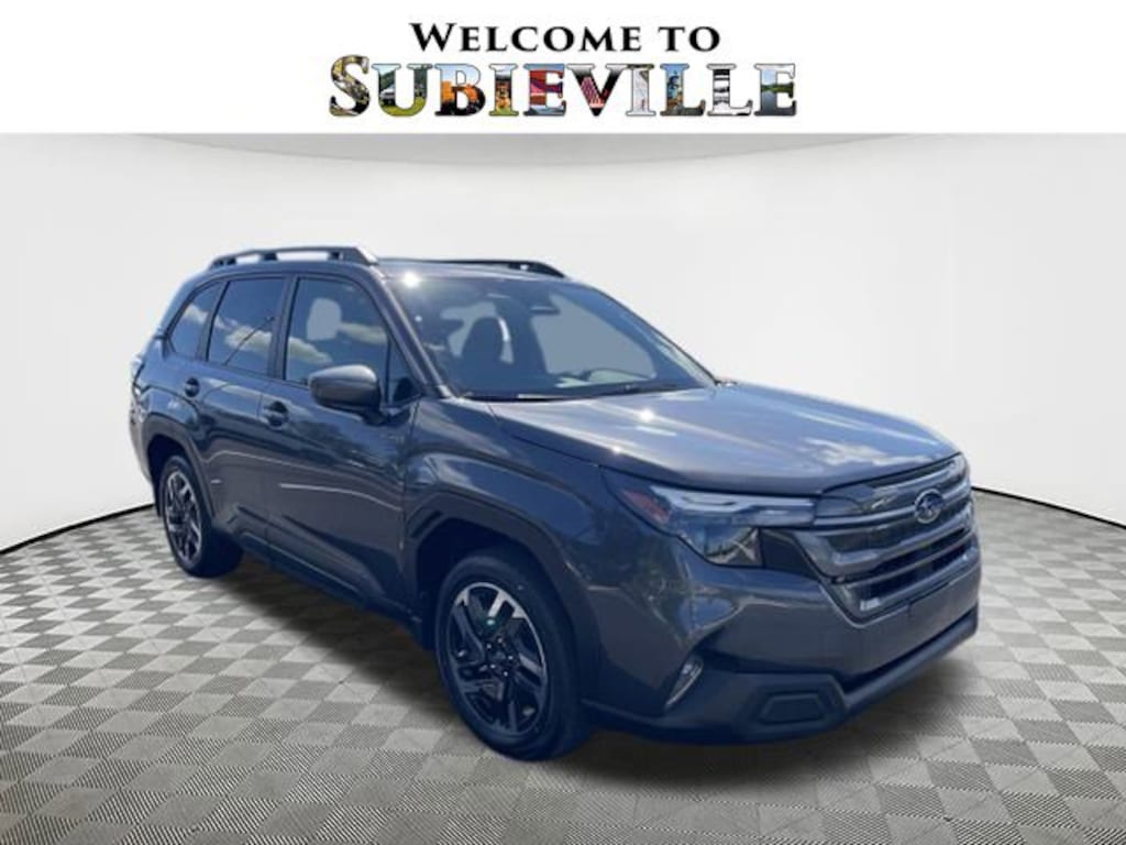 2025 Subaru Forester Hybrid Premium Mgm 2.5L 4-Cylinder DOHC 16V, 4-Wheel Disc Brakes, 6 Speakers, ABS brakes, Air Conditioning, Alloy wheels, AM/FM radio: SiriusXM with 360L, Anti-whiplash front head restraints, Auto High-beam Headlights, Automatic temperature control, Brake assist, Bumpers: body-color, Compass, Driver door bin, Driver vanity mirror, Dual front impact airbags, Dual front side impact airbags, Electronic Stability Control, Exterior Parking Camera Rear, Four wheel independent suspension, Front anti-roll bar, Front Bucket Seats, Front Center Armrest, Front dual zone A/C, Front fog lights, Front reading lights, Fully automatic headlights, Heated door mirrors, Heated Front Bucket Seats, Heated front seats, Illuminated entry, Knee airbag, Low tire pressure warning, Navigation system: TomTom Navigation w/what3words, Occupant sensing airbag, Outside temperature display, Overhead airbag, Overhead console, Panic alarm, Passenger door bin, Passenger vanity mirror, Power door mirrors, Power driver seat, Power Liftgate, Power moonroof: Panoramic, Power steering, Power windows, Premium Cloth Upholstery, Radio data system, Rear anti-roll bar, Rear seat center armrest, Rear window defroster, Rear window wiper, Remote keyless entry, Security system, Speed control, Speed-sensing steering, Split folding rear seat, Spoiler, Standard Model, Steering wheel mounted audio controls, Tachometer, Telescoping steering wheel, Tilt steering wheel, Traction control, Trip computer, Variably intermittent wipers, Wheels: 18" x 7.0 J Dark Metallic Aluminum-Alloy, 2.5L 4-Cylinder DOHC 16V. AWD Lineartronic CVT 35/34 City/Highway MPG 2.5L 4-Cylinder DOHC 16V
