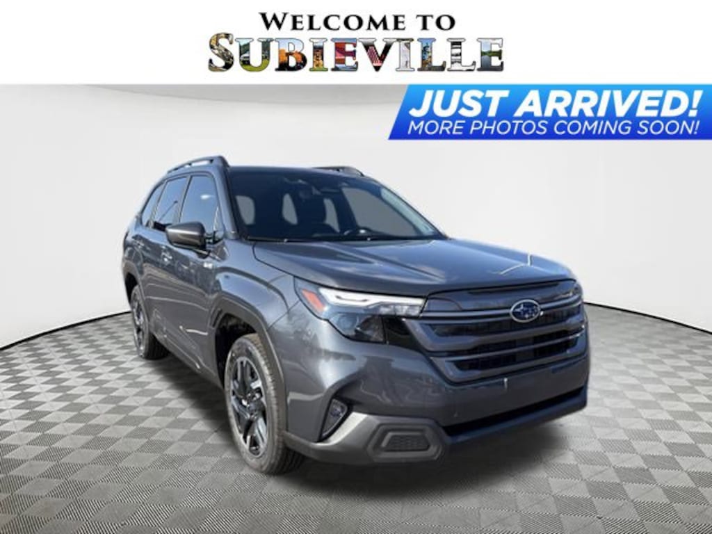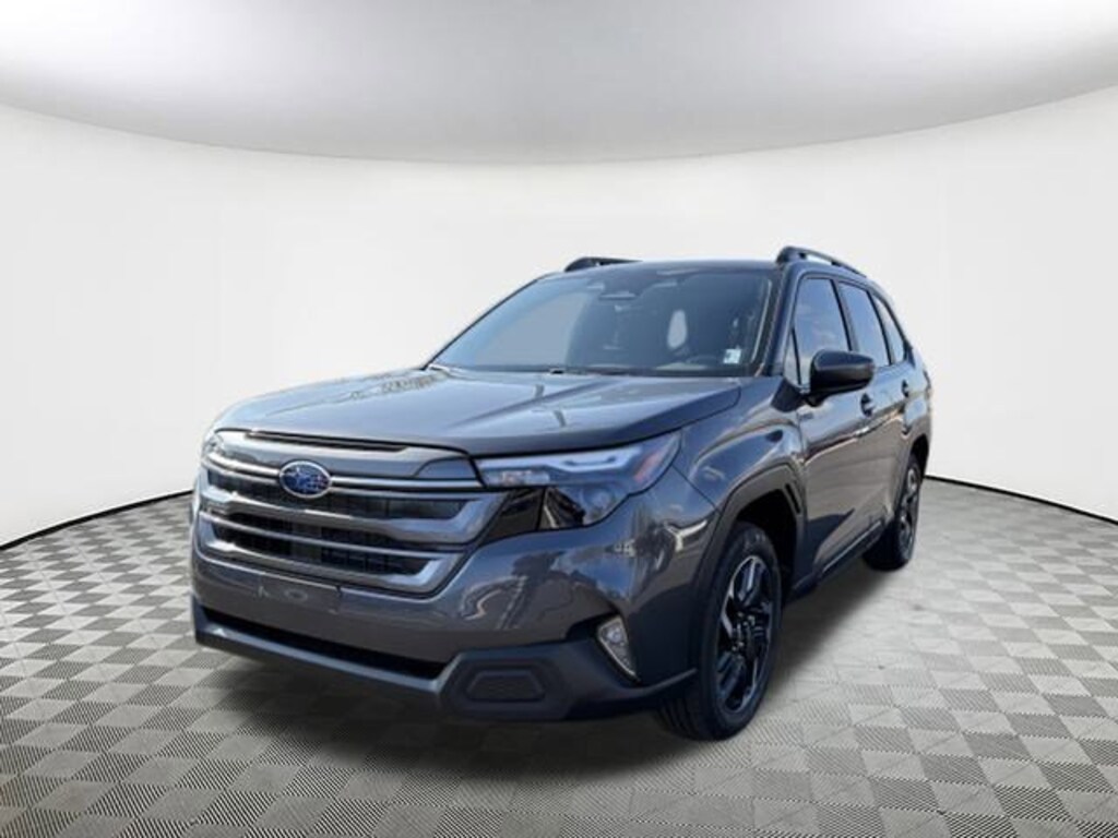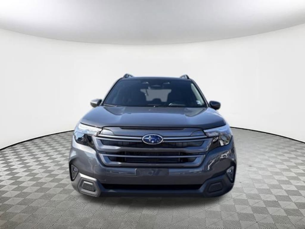 2025 Subaru Forester Hybrid Premium Magnetite Gray Metallic 2.5L 4-Cylinder DOHC 16V, 4-Wheel Disc Brakes, 6 Speakers, ABS brakes, Air Conditioning, Alloy wheels, AM/FM radio: SiriusXM with 360L, Anti-whiplash front head restraints, Auto High-beam Headlights, Automatic temperature control, Brake assist, Bumpers: body-color, Compass, Driver door bin, Driver vanity mirror, Dual front impact airbags, Dual front side impact airbags, Electronic Stability Control, Emergency communication system: MySubaru Safety (3-year free trial), Exterior Parking Camera Rear, Four wheel independent suspension, Front anti-roll bar, Front Bucket Seats, Front Center Armrest, Front dual zone A/C, Front fog lights, Front reading lights, Fully automatic headlights, Heated door mirrors, Heated Front Bucket Seats, Heated front seats, Illuminated entry, Knee airbag, Low tire pressure warning, Navigation system: TomTom Navigation w/what3words, Occupant sensing airbag, Outside temperature display, Overhead airbag, Overhead console, Panic alarm, Passenger door bin, Passenger vanity mirror, Power door mirrors, Power driver seat, Power Liftgate, Power moonroof: Panoramic, Power steering, Power windows, Premium Cloth Upholstery, Radio data system, Radio: Subaru 11.6" Multimedia Navigation System, Rear anti-roll bar, Rear seat center armrest, Rear window defroster, Rear window wiper, Remote keyless entry, Security system, Speed control, Speed-sensing steering, Split folding rear seat, Spoiler, Standard Model, Steering wheel mounted audio controls, Tachometer, Telescoping steering wheel, Tilt steering wheel, Traction control, Trip computer, Variably intermittent wipers, Wheels: 18" x 7.0 J Dark Metallic Aluminum-Alloy, 2.5L 4-Cylinder DOHC 16V. AWD Lineartronic CVT 35/34 City/Highway MPG 2.5L 4-Cylinder DOHC 16V