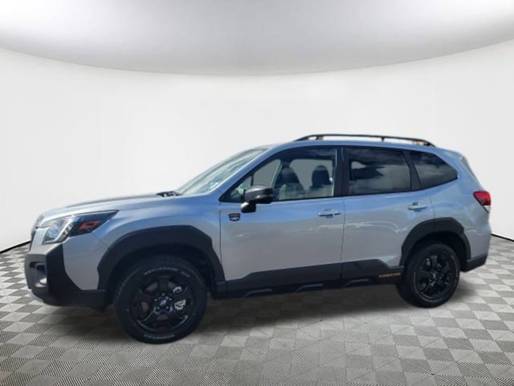 2025 Subaru Forester Wilderness Ice Silver Metallic 4-Wheel Disc Brakes, 6 Speakers, ABS brakes, Air Conditioning, Alloy wheels, AM/FM radio: SiriusXM, Anti-whiplash front head restraints, Auto High-beam Headlights, Automatic temperature control, Brake assist, Bumpers: body-color, Driver door bin, Driver vanity mirror, Dual front impact airbags, Dual front side impact airbags, Electronic Stability Control, Exterior Parking Camera Rear, Four wheel independent suspension, Front anti-roll bar, Front Bucket Seats, Front Center Armrest, Front dual zone A/C, Front fog lights, Front reading lights, Fully automatic headlights, Heated door mirrors, Heated Front Bucket Seats, Heated front seats, Illuminated entry, Knee airbag, Leather Shift Knob, Leather steering wheel, Low tire pressure warning, Occupant sensing airbag, Outside temperature display, Overhead airbag, Overhead console, Panic alarm, Passenger door bin, Passenger vanity mirror, Power door mirrors, Power driver seat, Power moonroof: Panoramic, Power steering, Power windows, Radio data system, Rear anti-roll bar, Rear seat center armrest, Rear window defroster, Rear window wiper, Remote keyless entry, Security system, Speed control, Speed-sensing steering, Split folding rear seat, Spoiler, Steering wheel mounted audio controls, Tachometer, Telescoping steering wheel, Textured StarTex Upholstery, Tilt steering wheel, Traction control, Trip computer, Turn signal indicator mirrors, Variably intermittent wipers, Wheels: 17" x 7.0 J Matte Black Finish Alum-Alloy. AWD Lineartronic CVT 25/28 City/Highway MPG 2.5L 4-Cylinder DOHC 16V