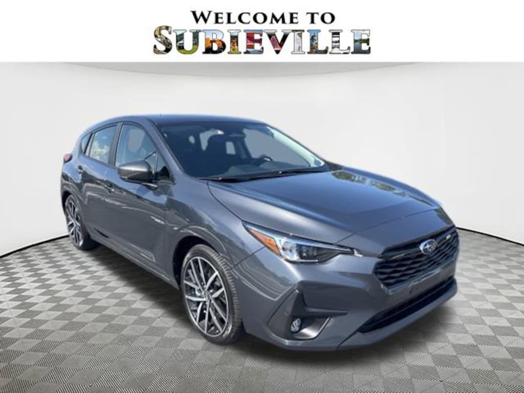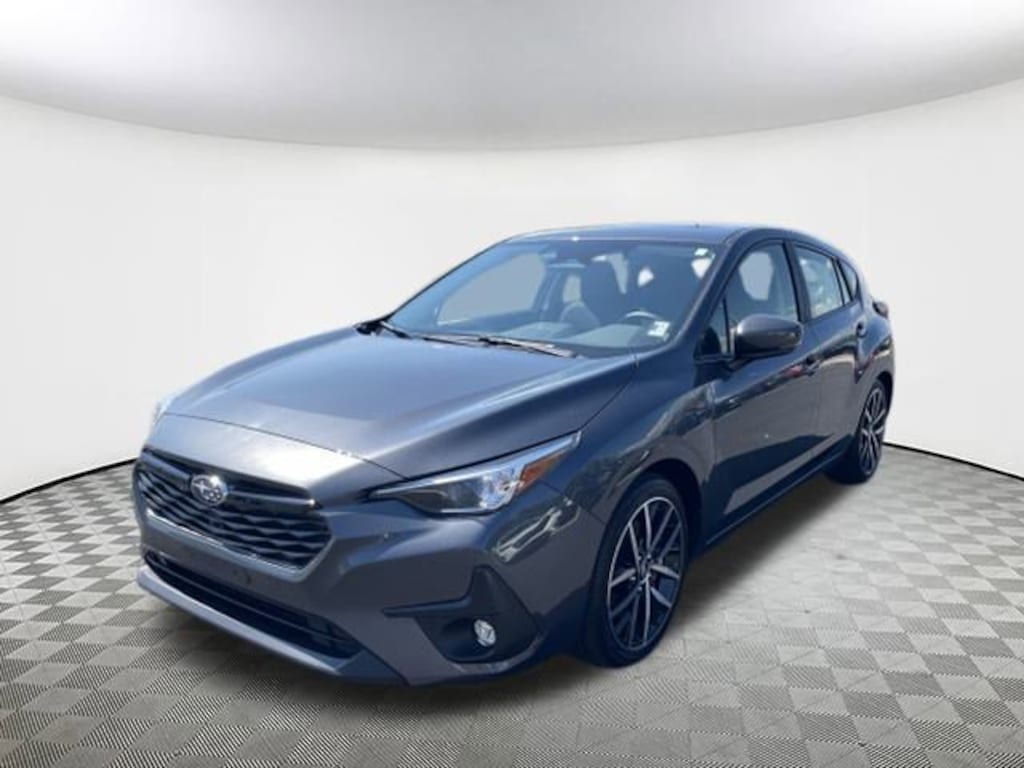 2025 Subaru Impreza Sport Magnetite Gray Metallic 4-Wheel Disc Brakes, 6 Speakers, ABS brakes, Air Conditioning, Alloy wheels, Anti-whiplash front head restraints, Auto High-beam Headlights, Automatic temperature control, Brake assist, Bumpers: body-color, Driver door bin, Driver vanity mirror, Dual front impact airbags, Dual front side impact airbags, Electronic Stability Control, Exterior Parking Camera Rear, Four wheel independent suspension, Front anti-roll bar, Front Bucket Seats, Front Center Armrest, Front dual zone A/C, Front fog lights, Front reading lights, Fully automatic headlights, Illuminated entry, Knee airbag, Low tire pressure warning, Occupant sensing airbag, Outside temperature display, Overhead airbag, Overhead console, Panic alarm, Passenger door bin, Passenger vanity mirror, Power door mirrors, Power steering, Power windows, Premium Sport Cloth Upholstery, Radio data system, Rear anti-roll bar, Rear seat center armrest, Rear window defroster, Rear window wiper, Remote keyless entry, Security system, Speed control, Speed-sensing steering, Split folding rear seat, Spoiler, Steering wheel mounted audio controls, Tachometer, Telescoping steering wheel, Tilt steering wheel, Traction control, Trip computer, Turn signal indicator mirrors, Variably intermittent wipers, Wheels: 18" x 7.0" J Machine Finish Aluminum-Alloy. AWD CVT Lineartronic 27/34 City/Highway MPG 2.0L DOHC