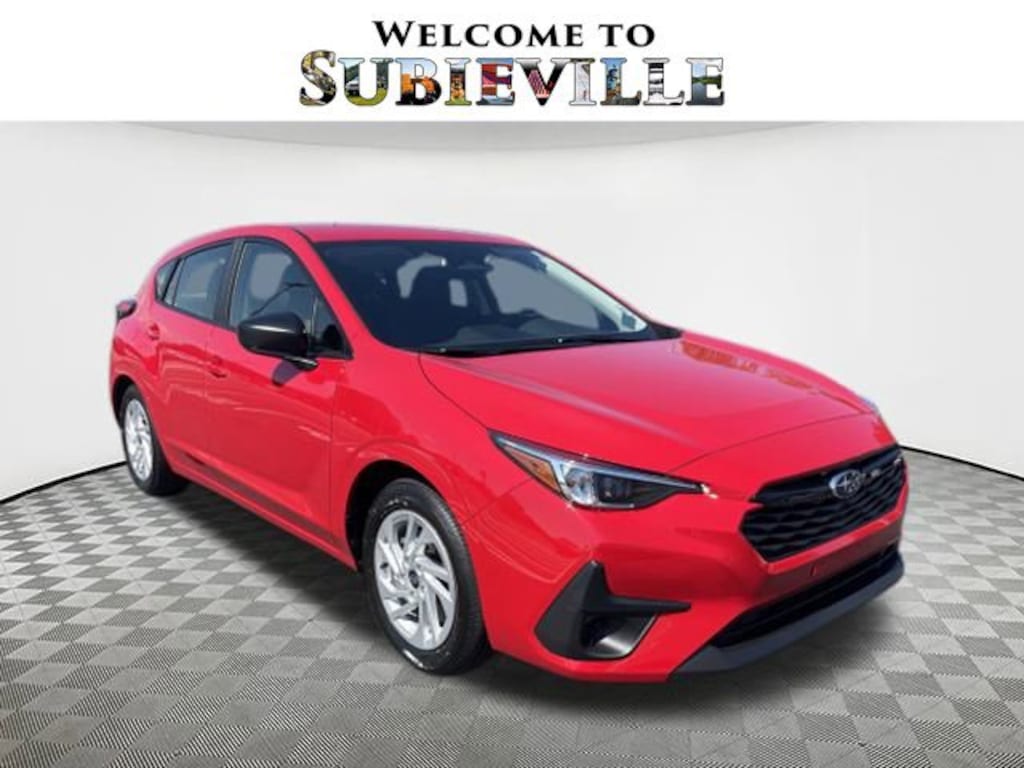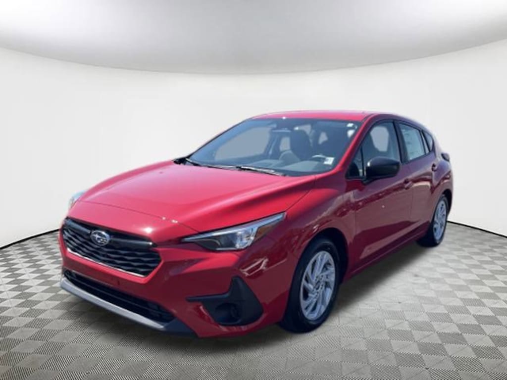 2025 Subaru Impreza Base Pure Red 4 Speakers, 4-Wheel Disc Brakes, ABS brakes, Air Conditioning, AM/FM radio: SiriusXM, Anti-whiplash front head restraints, Auto High-beam Headlights, Automatic temperature control, Brake assist, Bumpers: body-color, Cloth Upholstery, Driver door bin, Driver vanity mirror, Dual front impact airbags, Dual front side impact airbags, Electronic Stability Control, Exterior Parking Camera Rear, Four wheel independent suspension, Front anti-roll bar, Front Bucket Seats, Front Center Armrest, Front dual zone A/C, Front reading lights, Fully automatic headlights, Illuminated entry, Knee airbag, Low tire pressure warning, Occupant sensing airbag, Outside temperature display, Overhead airbag, Overhead console, Panic alarm, Passenger door bin, Passenger vanity mirror, Power door mirrors, Power steering, Power windows, Radio data system, Rear window defroster, Rear window wiper, Remote keyless entry, Security system, Speed control, Speed-sensing steering, Split folding rear seat, Spoiler, Steering wheel mounted audio controls, Tachometer, Telescoping steering wheel, Tilt steering wheel, Traction control, Trip computer, Variably intermittent wipers, Wheels: 16" x 6.0" 1/2J Steel w/Full Cap. AWD CVT Lineartronic 2.0L DOHC