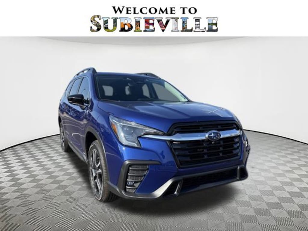 2026 Subaru Ascent Limited Sapphire Blue Pearl 14 Speakers, 3rd row seats: bench, 4-Wheel Disc Brakes, ABS brakes, Air Conditioning, Alloy wheels, AM/FM radio: SiriusXM with 360L, Apple CarPlay & Android Auto, Auto High-beam Headlights, Auto-dimming Rear-View mirror, Automatic temperature control, Brake assist, Bumpers: body-color, Compass, Delay-off headlights, Driver door bin, Driver vanity mirror, Dual front impact airbags, Dual front side impact airbags, Electronic Stability Control, Emergency communication system: MySubaru Companion (5-years free), Exterior Parking Camera Rear, Four wheel independent suspension, Front anti-roll bar, Front Bucket Seats, Front Center Armrest, Front dual zone A/C, Front fog lights, Front reading lights, Fully automatic headlights, Garage door transmitter: HomeLink, harman/kardon® Speakers, Heated door mirrors, Heated Front Bucket Seats, Heated front seats, Heated rear seats, Heated steering wheel, Illuminated entry, Knee airbag, Leather Shift Knob, Leather steering wheel, Low tire pressure warning, Memory seat, Navigation system: MySubaru Navigator (1-year trial), Occupant sensing airbag, Outside temperature display, Overhead airbag, Overhead console, Panic alarm, Passenger door bin, Passenger vanity mirror, Perforated Leather-Trimmed Upholstery, Power door mirrors, Power driver seat, Power Liftgate, Power moonroof, Power passenger seat, Power steering, Power windows, Radio data system, Radio: Subaru 11.6" Multimedia System w/Navigation, Rear air conditioning, Rear anti-roll bar, Rear reading lights, Rear window defroster, Rear window wiper, Reclining 3rd row seat, Remote keyless entry, Security system, Speed control, Speed-sensing steering, Split folding rear seat, Spoiler, Steering wheel mounted audio controls, Tachometer, Telescoping steering wheel, Tilt steering wheel, Traction control, Trip computer, Turn signal indicator mirrors, Variably intermittent wipers, Wheels: 20" x 7.5 J Dk Gray Alloy w/Machine Finish. AWD Lineartronic CVT 2.4L 4-Cylinder DOHC 16V