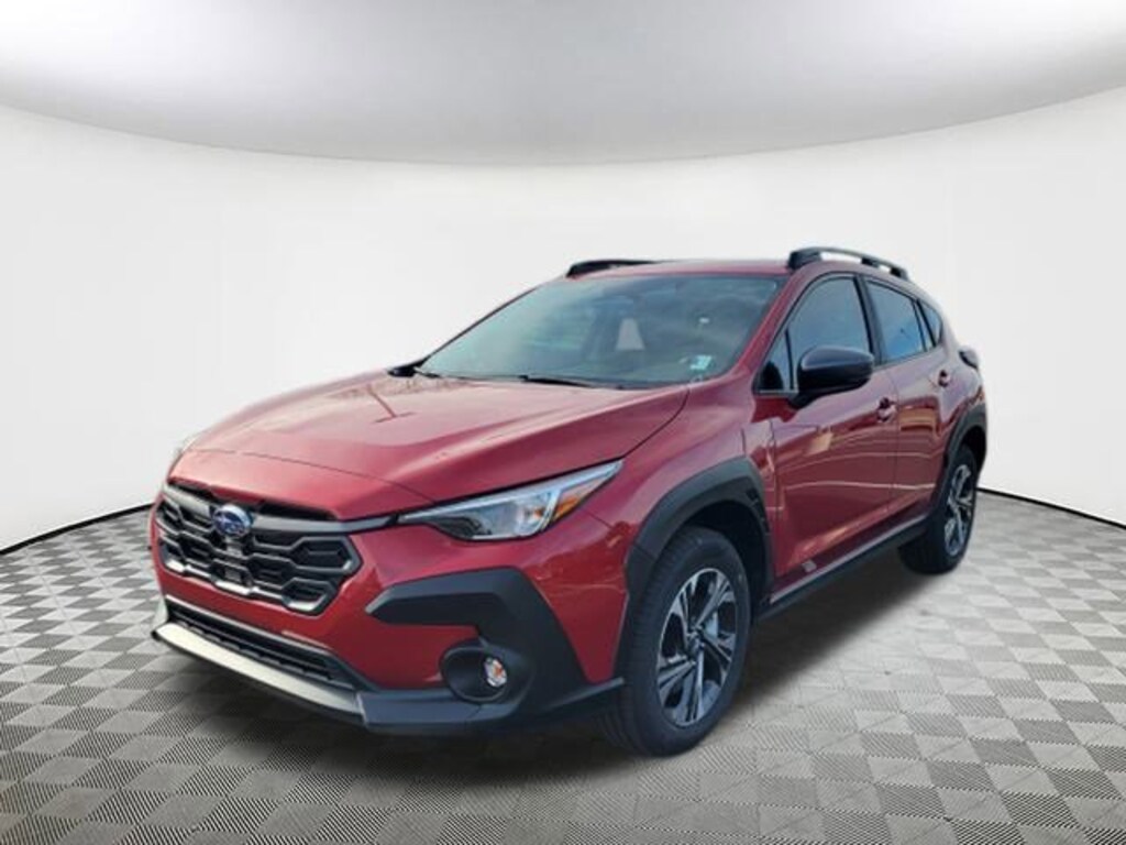 2026 Subaru Crosstrek Premium Lithium Red Pearl 4-Wheel Disc Brakes, 6 Speakers, ABS brakes, Air Conditioning, Alloy wheels, AM/FM radio: SiriusXM, Anti-whiplash front head restraints, Auto High-beam Headlights, Automatic temperature control, Brake assist, Bumpers: body-color, Cloth Upholstery, Driver door bin, Driver vanity mirror, Dual front impact airbags, Dual front side impact airbags, Electronic Stability Control, Emergency communication system: MySubaru Companion (5-years free), Exterior Parking Camera Rear, Four wheel independent suspension, Front anti-roll bar, Front Bucket Seats, Front Center Armrest, Front dual zone A/C, Front fog lights, Front reading lights, Fully automatic headlights, Illuminated entry, Knee airbag, Low tire pressure warning, Occupant sensing airbag, Outside temperature display, Overhead airbag, Overhead console, Panic alarm, Passenger door bin, Passenger vanity mirror, Power door mirrors, Power steering, Power windows, Radio data system, Radio: Subaru 11.6" Multimedia Plus System, Rear anti-roll bar, Rear seat center armrest, Rear side impact airbag, Rear window defroster, Rear window wiper, Remote keyless entry, Security system, Speed control, Speed-sensing steering, Split folding rear seat, Spoiler, Steering wheel mounted audio controls, Tachometer, Telescoping steering wheel, Tilt steering wheel, Traction control, Trip computer, Turn signal indicator mirrors, Variably intermittent wipers, Wheels: 17" x 7.0" J Machine Finish Aluminum-Alloy. AWD Lineartronic CVT 26/33 City/Highway MPG 2.5L 4-Cylinder DOHC 16V