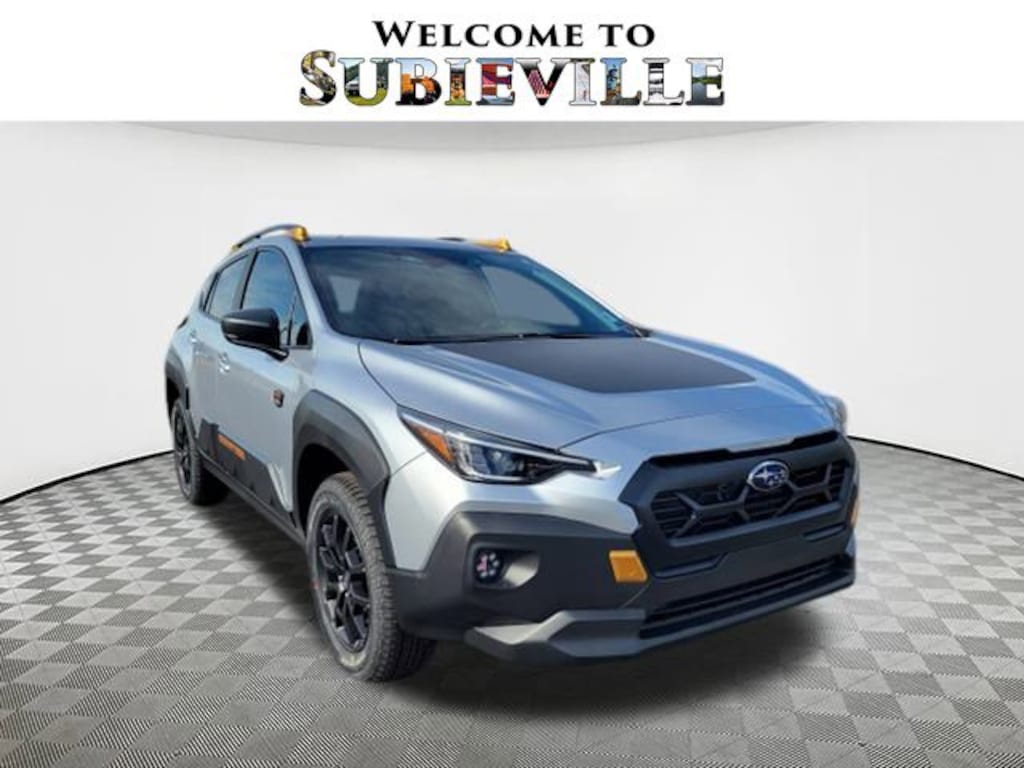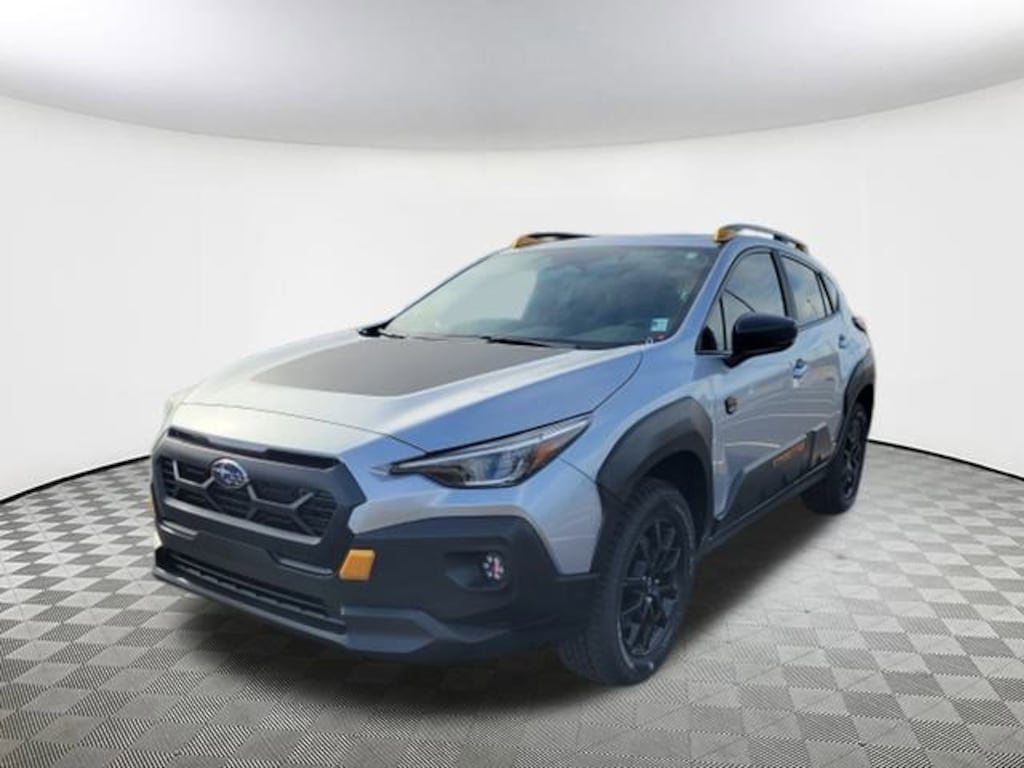 2026 Subaru Crosstrek Wilderness Ice Silver Metallic 4-Wheel Disc Brakes, 6 Speakers, ABS brakes, Air Conditioning, Alloy wheels, AM/FM radio: SiriusXM, Anti-whiplash front head restraints, Auto High-beam Headlights, Automatic temperature control, Brake assist, Bumpers: body-color, Driver door bin, Driver vanity mirror, Dual front impact airbags, Dual front side impact airbags, Electronic Stability Control, Emergency communication system: MySubaru Companion (5-years free), Exterior Parking Camera Rear, Four wheel independent suspension, Front anti-roll bar, Front Bucket Seats, Front Center Armrest, Front dual zone A/C, Front fog lights, Front reading lights, Fully automatic headlights, Heated door mirrors, Heated Front Bucket Seats, Heated front seats, Heated steering wheel, Illuminated entry, Knee airbag, Leather Shift Knob, Leather steering wheel, Low tire pressure warning, Occupant sensing airbag, Outside temperature display, Overhead airbag, Overhead console, Panic alarm, Passenger door bin, Passenger vanity mirror, Power door mirrors, Power steering, Power windows, Radio data system, Radio: Subaru 11.6" Multimedia Plus System, Rear anti-roll bar, Rear seat center armrest, Rear side impact airbag, Rear window defroster, Rear window wiper, Remote keyless entry, Security system, Speed control, Speed-sensing steering, Split folding rear seat, Spoiler, Steering wheel mounted audio controls, Tachometer, Telescoping steering wheel, Tilt steering wheel, Traction control, Trip computer, Turn signal indicator mirrors, Variably intermittent wipers, Wheels: 17" x 7.0" J Matte Black Aluminum-Alloy, Wilderness StarTex Upholstery. AWD Lineartronic CVT 24/29 City/Highway MPG 2.5L 4-Cylinder DOHC 16V