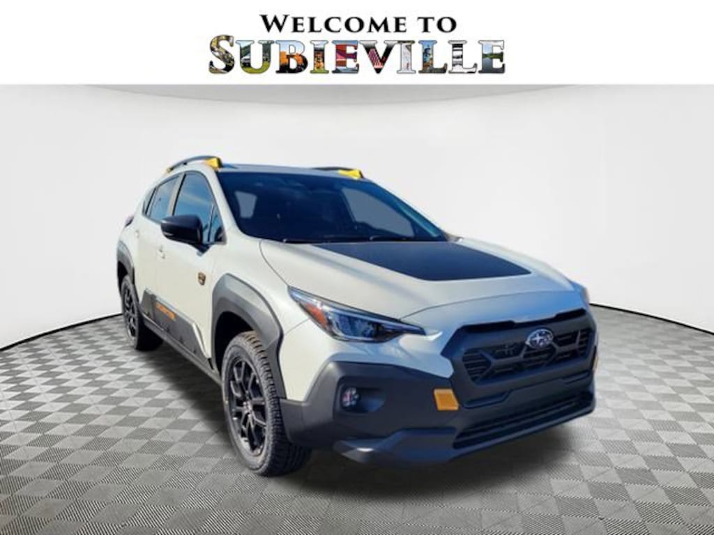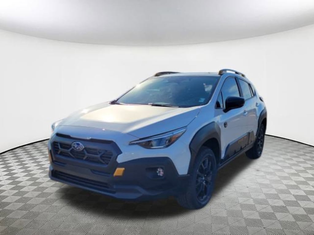 2026 Subaru Crosstrek Wilderness Crystal White Pearl 4-Wheel Disc Brakes, 6 Speakers, ABS brakes, Air Conditioning, Alloy wheels, AM/FM radio: SiriusXM, Anti-whiplash front head restraints, Auto High-beam Headlights, Automatic temperature control, Brake assist, Bumpers: body-color, Driver door bin, Driver vanity mirror, Dual front impact airbags, Dual front side impact airbags, Electronic Stability Control, Emergency communication system: MySubaru Companion (5-years free), Exterior Parking Camera Rear, Four wheel independent suspension, Front anti-roll bar, Front Bucket Seats, Front Center Armrest, Front dual zone A/C, Front fog lights, Front reading lights, Fully automatic headlights, Heated door mirrors, Heated Front Bucket Seats, Heated front seats, Heated steering wheel, Illuminated entry, Knee airbag, Leather Shift Knob, Leather steering wheel, Low tire pressure warning, Occupant sensing airbag, Outside temperature display, Overhead airbag, Overhead console, Panic alarm, Passenger door bin, Passenger vanity mirror, Power door mirrors, Power steering, Power windows, Radio data system, Radio: Subaru 11.6" Multimedia Plus System, Rear anti-roll bar, Rear seat center armrest, Rear side impact airbag, Rear window defroster, Rear window wiper, Remote keyless entry, Security system, Speed control, Speed-sensing steering, Split folding rear seat, Spoiler, Steering wheel mounted audio controls, Tachometer, Telescoping steering wheel, Tilt steering wheel, Traction control, Trip computer, Turn signal indicator mirrors, Variably intermittent wipers, Wheels: 17" x 7.0" J Matte Black Aluminum-Alloy, Wilderness StarTex Upholstery. AWD Lineartronic CVT 24/29 City/Highway MPG 2.5L 4-Cylinder DOHC 16V