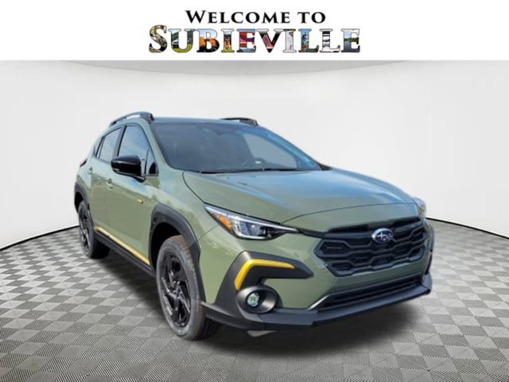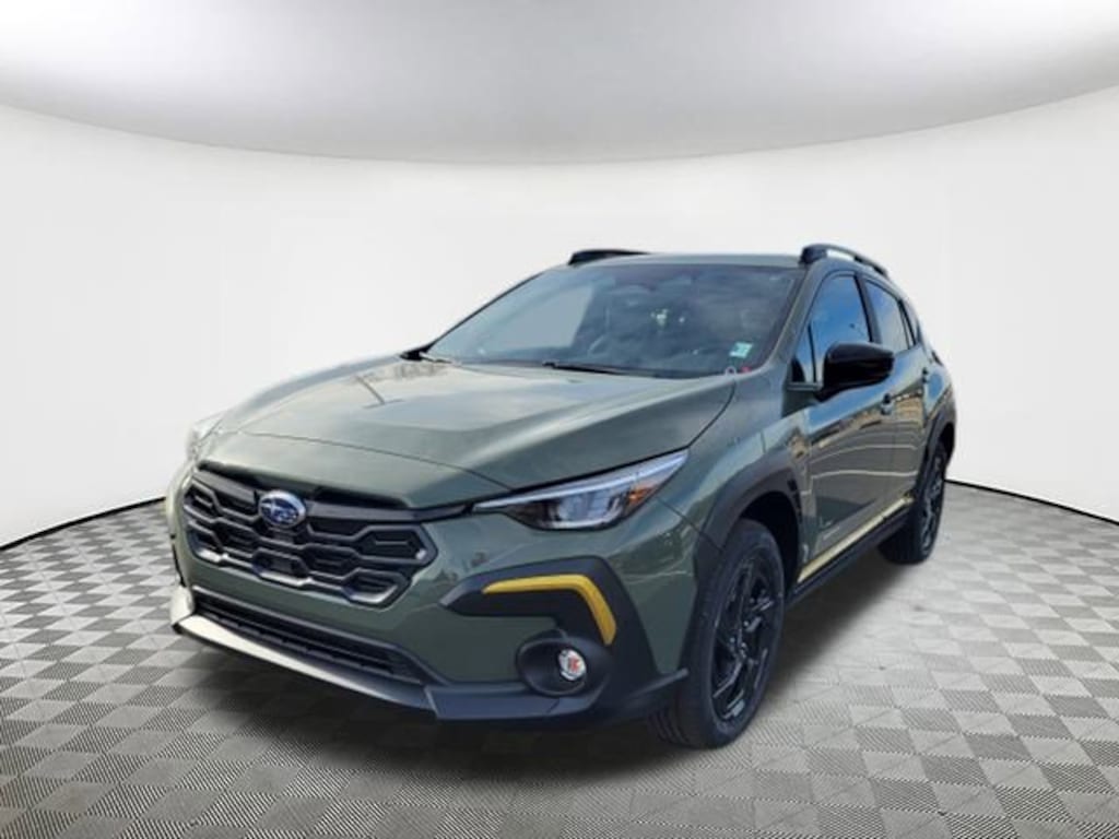 2026 Subaru Crosstrek Sport Alpine Green 4-Wheel Disc Brakes, 6 Speakers, ABS brakes, Air Conditioning, Alloy wheels, AM/FM radio: SiriusXM, Anti-whiplash front head restraints, Auto High-beam Headlights, Automatic temperature control, Brake assist, Bumpers: body-color, Driver door bin, Driver vanity mirror, Dual front impact airbags, Dual front side impact airbags, Electronic Stability Control, Emergency communication system: MySubaru Companion (5-years free), Exterior Parking Camera Rear, Four wheel independent suspension, Front anti-roll bar, Front Bucket Seats, Front Center Armrest, Front dual zone A/C, Front fog lights, Front reading lights, Fully automatic headlights, Heated door mirrors, Heated Front Bucket Seats, Heated front seats, Illuminated entry, Knee airbag, Leather Shift Knob, Leather steering wheel, Low tire pressure warning, Occupant sensing airbag, Outside temperature display, Overhead airbag, Overhead console, Panic alarm, Passenger door bin, Passenger vanity mirror, Power door mirrors, Power steering, Power windows, Radio data system, Radio: Subaru 11.6" Multimedia Plus System, Rear anti-roll bar, Rear seat center armrest, Rear side impact airbag, Rear window defroster, Rear window wiper, Remote keyless entry, Security system, Speed control, Speed-sensing steering, Split folding rear seat, Spoiler, Sport Cloth Upholstery, Steering wheel mounted audio controls, Tachometer, Telescoping steering wheel, Tilt steering wheel, Traction control, Trip computer, Turn signal indicator mirrors, Variably intermittent wipers, Wheels: 18" x 7.0" J Dark Gray Aluminum-Alloy. AWD Lineartronic CVT 26/33 City/Highway MPG 2.5L 4-Cylinder DOHC 16V