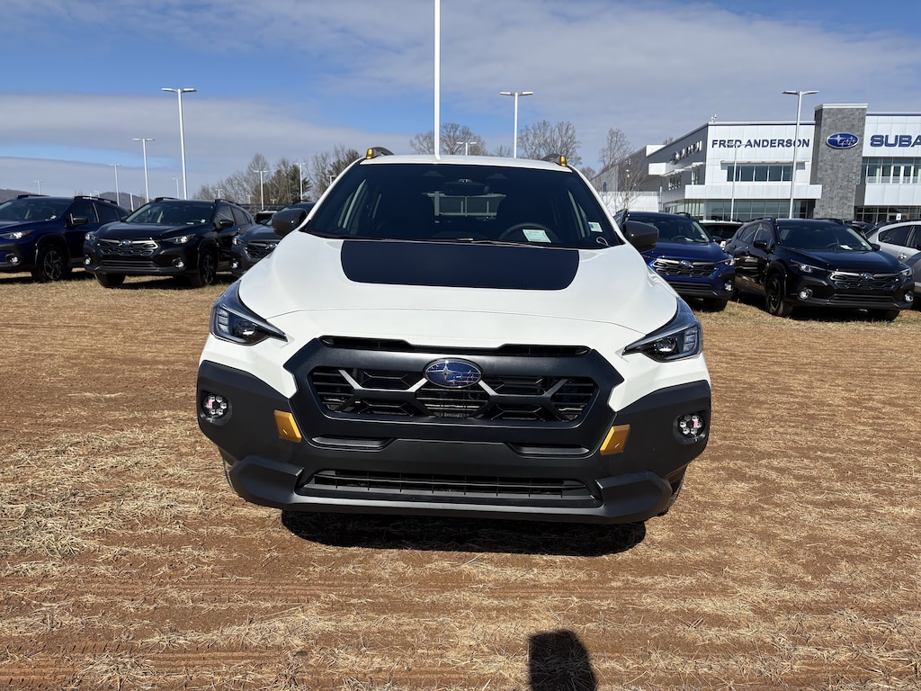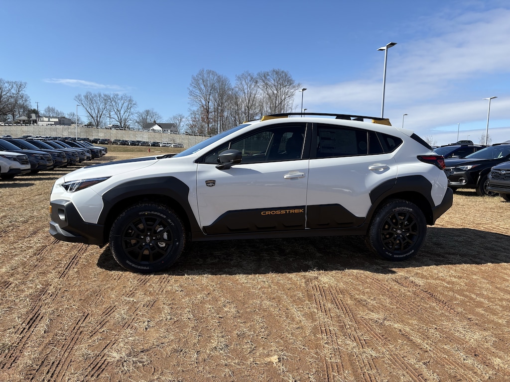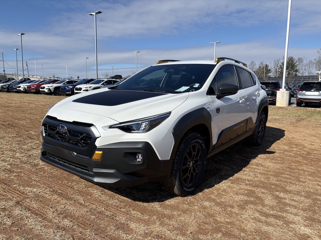 2026 Subaru Crosstrek Wilderness Crystal White Pearl 4-Wheel Disc Brakes, 6 Speakers, ABS brakes, Air Conditioning, Alloy wheels, Anti-whiplash front head restraints, Auto High-beam Headlights, Automatic temperature control, Brake assist, Bumpers: body-color, Driver door bin, Driver vanity mirror, Dual front impact airbags, Dual front side impact airbags, Electronic Stability Control, Emergency communication system: MySubaru Companion (5-years free), Exterior Parking Camera Rear, Four wheel independent suspension, Front anti-roll bar, Front Bucket Seats, Front Center Armrest, Front dual zone A/C, Front fog lights, Front reading lights, Fully automatic headlights, Heated door mirrors, Heated Front Bucket Seats, Heated front seats, Heated steering wheel, Illuminated entry, Knee airbag, Leather Shift Knob, Leather steering wheel, Low tire pressure warning, Occupant sensing airbag, Outside temperature display, Overhead airbag, Overhead console, Panic alarm, Passenger door bin, Passenger vanity mirror, Power door mirrors, Power steering, Power windows, Radio data system, Radio: Subaru 11.6" Multimedia Plus System, Rear anti-roll bar, Rear seat center armrest, Rear side impact airbag, Rear window defroster, Rear window wiper, Remote keyless entry, Security system, Speed control, Speed-sensing steering, Split folding rear seat, Spoiler, Steering wheel mounted audio controls, Tachometer, Telescoping steering wheel, Tilt steering wheel, Traction control, Trip computer, Turn signal indicator mirrors, Variably intermittent wipers, Wheels: 17" x 7.0" J Matte Black Aluminum-Alloy, Wilderness StarTex Upholstery. AWD Lineartronic CVT 24/29 City/Highway MPG 2.5L 4-Cylinder DOHC 16V