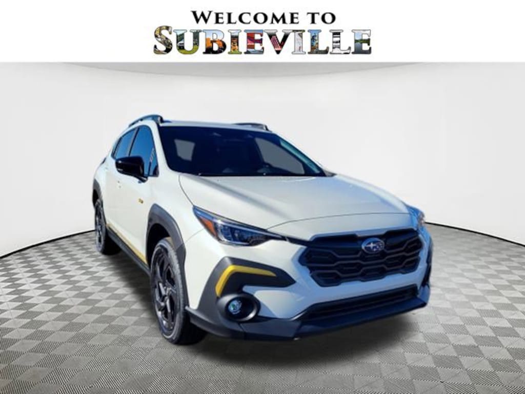 2026 Subaru Crosstrek Sport White Pearl 4-Wheel Disc Brakes, 6 Speakers, ABS brakes, Air Conditioning, Alloy wheels, AM/FM radio: SiriusXM, Anti-whiplash front head restraints, Auto High-beam Headlights, Automatic temperature control, Brake assist, Bumpers: body-color, Driver door bin, Driver vanity mirror, Dual front impact airbags, Dual front side impact airbags, Electronic Stability Control, Emergency communication system: MySubaru Companion (5-years free), Exterior Parking Camera Rear, Four wheel independent suspension, Front anti-roll bar, Front Bucket Seats, Front Center Armrest, Front dual zone A/C, Front fog lights, Front reading lights, Fully automatic headlights, Heated door mirrors, Heated Front Bucket Seats, Heated front seats, Illuminated entry, Knee airbag, Leather Shift Knob, Leather steering wheel, Low tire pressure warning, Occupant sensing airbag, Outside temperature display, Overhead airbag, Overhead console, Panic alarm, Passenger door bin, Passenger vanity mirror, Power door mirrors, Power steering, Power windows, Radio data system, Radio: Subaru 11.6" Multimedia Plus System, Rear anti-roll bar, Rear seat center armrest, Rear side impact airbag, Rear window defroster, Rear window wiper, Remote keyless entry, Security system, Speed control, Speed-sensing steering, Split folding rear seat, Spoiler, Sport Cloth Upholstery, Steering wheel mounted audio controls, Tachometer, Telescoping steering wheel, Tilt steering wheel, Traction control, Trip computer, Turn signal indicator mirrors, Variably intermittent wipers, Wheels: 18" x 7.0" J Dark Gray Aluminum-Alloy. AWD Lineartronic CVT 26/33 City/Highway MPG 2.5L 4-Cylinder DOHC 16V