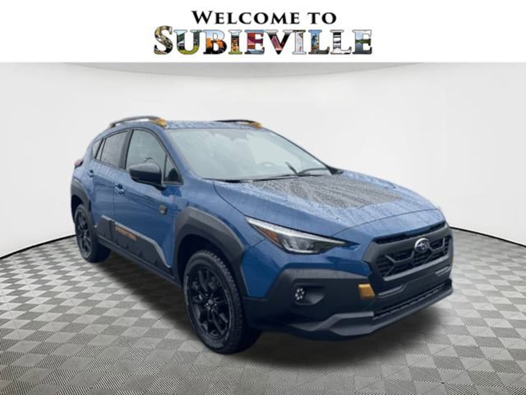 2026 Subaru Crosstrek Wilderness Geyser Blue ABS brakes, Active Cruise Control, Alloy wheels, Electronic Stability Control, Front dual zone A/C, Heated door mirrors, Heated Front Bucket Seats, Heated front seats, Illuminated entry, Low tire pressure warning, Remote keyless entry, Traction control, 4-Wheel Disc Brakes, 6 Speakers, Air Conditioning, AM/FM radio: SiriusXM, Anti-whiplash front head restraints, Auto High-beam Headlights, Automatic temperature control, Brake assist, Bumpers: body-color, Driver door bin, Driver vanity mirror, Dual front impact airbags, Dual front side impact airbags, Emergency communication system: MySubaru Companion (5-years free), Exterior Parking Camera Rear, Four wheel independent suspension, Front anti-roll bar, Front Bucket Seats, Front Center Armrest, Front fog lights, Front reading lights, Fully automatic headlights, Heated steering wheel, Knee airbag, Leather Shift Knob, Leather steering wheel, Occupant sensing airbag, Outside temperature display, Overhead airbag, Overhead console, Panic alarm, Passenger door bin, Passenger vanity mirror, Power door mirrors, Power steering, Power windows, Radio data system, Radio: Subaru 11.6" Multimedia Plus System, Rear anti-roll bar, Rear seat center armrest, Rear side impact airbag, Rear window defroster, Rear window wiper, Security system, Speed control, Speed-sensing steering, Split folding rear seat, Spoiler, Steering wheel mounted audio controls, Tachometer, Telescoping steering wheel, Tilt steering wheel, Trip computer, Turn signal indicator mirrors, Variably intermittent wipers, Wheels: 17" x 7.0" J Matte Black Aluminum-Alloy, Wilderness StarTex Upholstery, ABS brakes, Active Cruise Control, Alloy wheels, Electronic Stability Control, Front dual zone A/C, Heated door mirrors, Heated Front Bucket Seats, Heated front seats, Illuminated entry, Low tire pressure warning, Remote keyless entry, Traction control. AWD Lineartronic CVT 24/29 City/Highway MPG 2.5L 4-Cylinder DOHC 16V