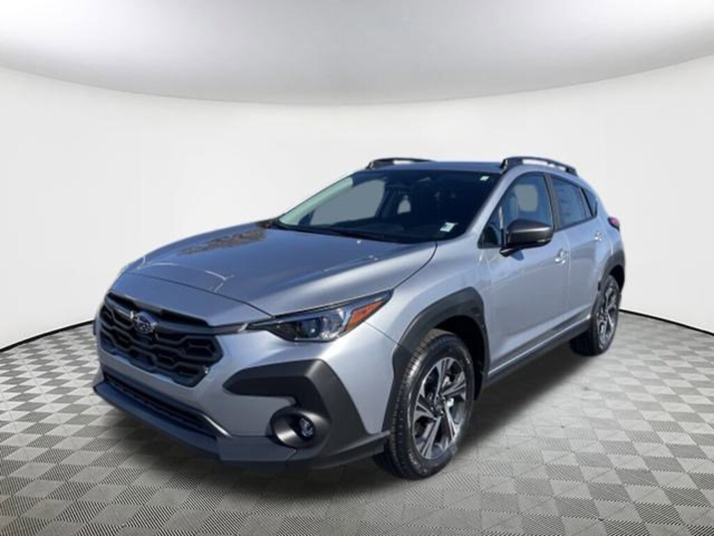 2026 Subaru Crosstrek Premium Ice Silver Metallic 4-Wheel Disc Brakes, 6 Speakers, ABS brakes, Air Conditioning, Alloy wheels, AM/FM radio: SiriusXM, Anti-whiplash front head restraints, Auto High-beam Headlights, Automatic temperature control, Brake assist, Bumpers: body-color, Cloth Upholstery, Driver door bin, Driver vanity mirror, Dual front impact airbags, Dual front side impact airbags, Electronic Stability Control, Emergency communication system: MySubaru Companion (5-years free), Exterior Parking Camera Rear, Four wheel independent suspension, Front anti-roll bar, Front Bucket Seats, Front Center Armrest, Front dual zone A/C, Front fog lights, Front reading lights, Fully automatic headlights, Illuminated entry, Knee airbag, Low tire pressure warning, Occupant sensing airbag, Outside temperature display, Overhead airbag, Overhead console, Panic alarm, Passenger door bin, Passenger vanity mirror, Power door mirrors, Power steering, Power windows, Radio data system, Radio: Subaru 11.6" Multimedia Plus System, Rear anti-roll bar, Rear seat center armrest, Rear side impact airbag, Rear window defroster, Rear window wiper, Remote keyless entry, Security system, Speed control, Speed-sensing steering, Split folding rear seat, Spoiler, Steering wheel mounted audio controls, Tachometer, Telescoping steering wheel, Tilt steering wheel, Traction control, Trip computer, Turn signal indicator mirrors, Variably intermittent wipers, Wheels: 17" x 7.0" J Machine Finish Aluminum-Alloy. AWD Lineartronic CVT 26/33 City/Highway MPG 2.5L 4-Cylinder DOHC 16V