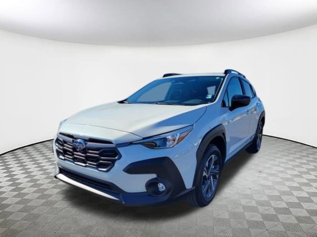 2026 Subaru Crosstrek Premium Crystal White Pearl 4-Wheel Disc Brakes, 6 Speakers, ABS brakes, Air Conditioning, Alloy wheels, AM/FM radio: SiriusXM, Anti-whiplash front head restraints, Auto High-beam Headlights, Automatic temperature control, Brake assist, Bumpers: body-color, Cloth Upholstery, Driver door bin, Driver vanity mirror, Dual front impact airbags, Dual front side impact airbags, Electronic Stability Control, Emergency communication system: MySubaru Companion (5-years free), Exterior Parking Camera Rear, Four wheel independent suspension, Front anti-roll bar, Front Bucket Seats, Front Center Armrest, Front dual zone A/C, Front fog lights, Front reading lights, Fully automatic headlights, Illuminated entry, Knee airbag, Low tire pressure warning, Occupant sensing airbag, Outside temperature display, Overhead airbag, Overhead console, Panic alarm, Passenger door bin, Passenger vanity mirror, Power door mirrors, Power steering, Power windows, Radio data system, Radio: Subaru 11.6" Multimedia Plus System, Rear anti-roll bar, Rear seat center armrest, Rear side impact airbag, Rear window defroster, Rear window wiper, Remote keyless entry, Security system, Speed control, Speed-sensing steering, Split folding rear seat, Spoiler, Steering wheel mounted audio controls, Tachometer, Telescoping steering wheel, Tilt steering wheel, Traction control, Trip computer, Turn signal indicator mirrors, Variably intermittent wipers, Wheels: 17" x 7.0" J Machine Finish Aluminum-Alloy. AWD Lineartronic CVT 26/33 City/Highway MPG 2.5L 4-Cylinder DOHC 16V