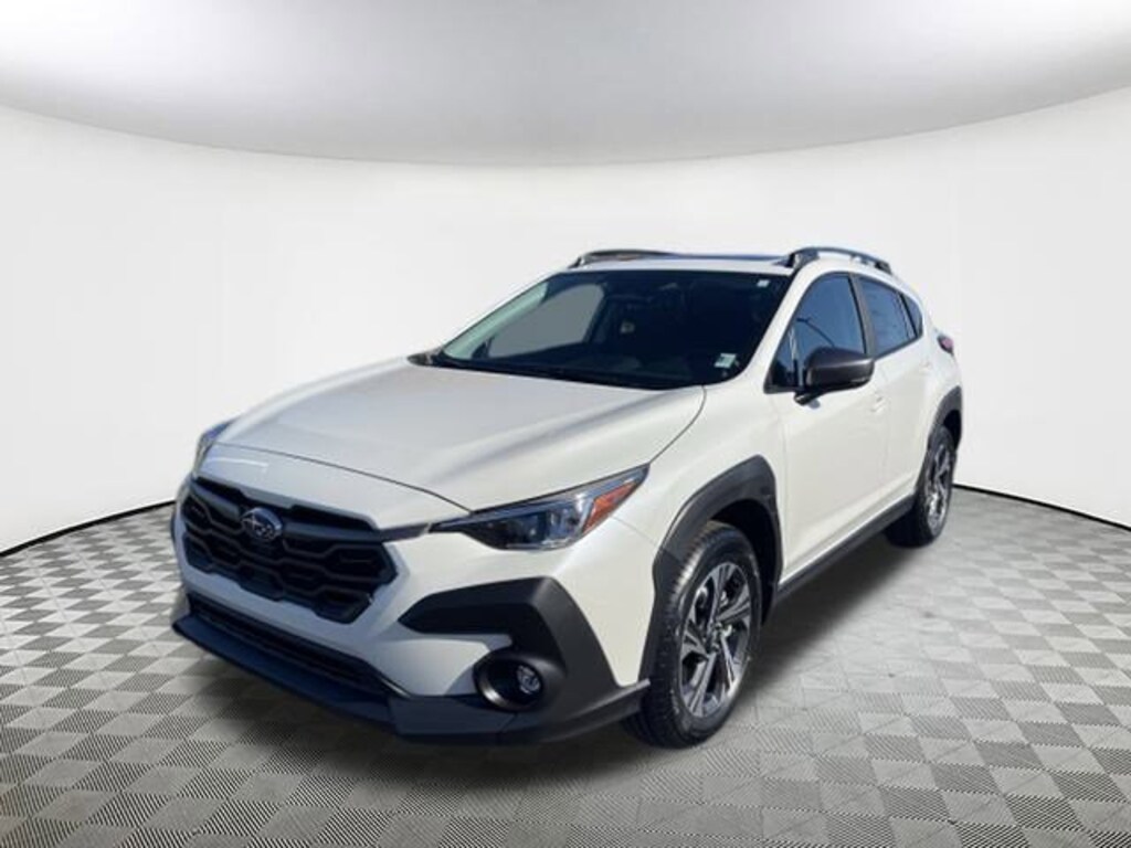 2026 Subaru Crosstrek Premium White Pearl 4-Wheel Disc Brakes, 6 Speakers, ABS brakes, Air Conditioning, Alloy wheels, AM/FM radio: SiriusXM, Anti-whiplash front head restraints, Auto High-beam Headlights, Automatic temperature control, Brake assist, Bumpers: body-color, Cloth Upholstery, Driver door bin, Driver vanity mirror, Dual front impact airbags, Dual front side impact airbags, Electronic Stability Control, Emergency communication system: MySubaru Companion (5-years free), Exterior Parking Camera Rear, Four wheel independent suspension, Front anti-roll bar, Front Bucket Seats, Front Center Armrest, Front dual zone A/C, Front fog lights, Front reading lights, Fully automatic headlights, Illuminated entry, Knee airbag, Low tire pressure warning, Occupant sensing airbag, Outside temperature display, Overhead airbag, Overhead console, Panic alarm, Passenger door bin, Passenger vanity mirror, Power door mirrors, Power steering, Power windows, Radio data system, Radio: Subaru 11.6" Multimedia Plus System, Rear anti-roll bar, Rear seat center armrest, Rear side impact airbag, Rear window defroster, Rear window wiper, Remote keyless entry, Security system, Speed control, Speed-sensing steering, Split folding rear seat, Spoiler, Steering wheel mounted audio controls, Tachometer, Telescoping steering wheel, Tilt steering wheel, Traction control, Trip computer, Turn signal indicator mirrors, Variably intermittent wipers, Wheels: 17" x 7.0" J Machine Finish Aluminum-Alloy. AWD Lineartronic CVT 26/33 City/Highway MPG 2.5L 4-Cylinder DOHC 16V