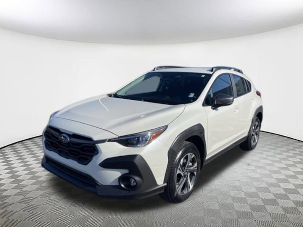 2026 Subaru Crosstrek Premium Crystal White Pearl 4-Wheel Disc Brakes, 6 Speakers, ABS brakes, Air Conditioning, Alloy wheels, AM/FM radio: SiriusXM, Anti-whiplash front head restraints, Auto High-beam Headlights, Automatic temperature control, Brake assist, Bumpers: body-color, Cloth Upholstery, Driver door bin, Driver vanity mirror, Dual front impact airbags, Dual front side impact airbags, Electronic Stability Control, Emergency communication system: MySubaru Companion (5-years free), Exterior Parking Camera Rear, Four wheel independent suspension, Front anti-roll bar, Front Bucket Seats, Front Center Armrest, Front dual zone A/C, Front fog lights, Front reading lights, Fully automatic headlights, Illuminated entry, Knee airbag, Low tire pressure warning, Occupant sensing airbag, Outside temperature display, Overhead airbag, Overhead console, Panic alarm, Passenger door bin, Passenger vanity mirror, Power door mirrors, Power steering, Power windows, Radio data system, Radio: Subaru 11.6" Multimedia Plus System, Rear anti-roll bar, Rear seat center armrest, Rear side impact airbag, Rear window defroster, Rear window wiper, Remote keyless entry, Security system, Speed control, Speed-sensing steering, Split folding rear seat, Spoiler, Steering wheel mounted audio controls, Tachometer, Telescoping steering wheel, Tilt steering wheel, Traction control, Trip computer, Turn signal indicator mirrors, Variably intermittent wipers, Wheels: 17" x 7.0" J Machine Finish Aluminum-Alloy. AWD Lineartronic CVT 26/33 City/Highway MPG 2.5L 4-Cylinder DOHC 16V