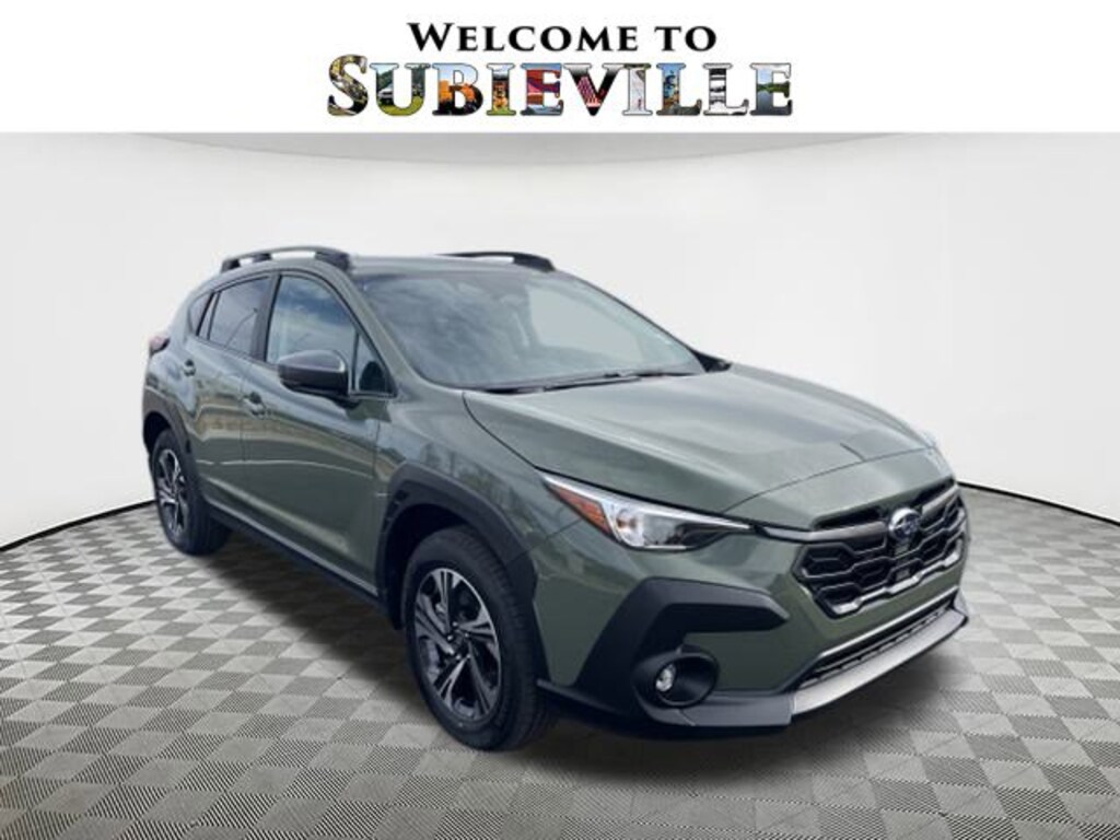2026 Subaru Crosstrek Premium Alpine Green 4-Wheel Disc Brakes, 6 Speakers, ABS brakes, Air Conditioning, Alloy wheels, AM/FM radio: SiriusXM, Anti-whiplash front head restraints, Auto High-beam Headlights, Automatic temperature control, Brake assist, Bumpers: body-color, Cloth Upholstery, Driver door bin, Driver vanity mirror, Dual front impact airbags, Dual front side impact airbags, Electronic Stability Control, Emergency communication system: MySubaru Companion (5-years free), Exterior Parking Camera Rear, Four wheel independent suspension, Front anti-roll bar, Front Bucket Seats, Front Center Armrest, Front dual zone A/C, Front fog lights, Front reading lights, Fully automatic headlights, Illuminated entry, Knee airbag, Low tire pressure warning, Occupant sensing airbag, Outside temperature display, Overhead airbag, Overhead console, Panic alarm, Passenger door bin, Passenger vanity mirror, Power door mirrors, Power steering, Power windows, Radio data system, Radio: Subaru 11.6" Multimedia Plus System, Rear anti-roll bar, Rear seat center armrest, Rear side impact airbag, Rear window defroster, Rear window wiper, Remote keyless entry, Security system, Speed control, Speed-sensing steering, Split folding rear seat, Spoiler, Steering wheel mounted audio controls, Tachometer, Telescoping steering wheel, Tilt steering wheel, Traction control, Trip computer, Turn signal indicator mirrors, Variably intermittent wipers, Wheels: 17" x 7.0" J Machine Finish Aluminum-Alloy. AWD Lineartronic CVT 26/33 City/Highway MPG 2.5L 4-Cylinder DOHC 16V
