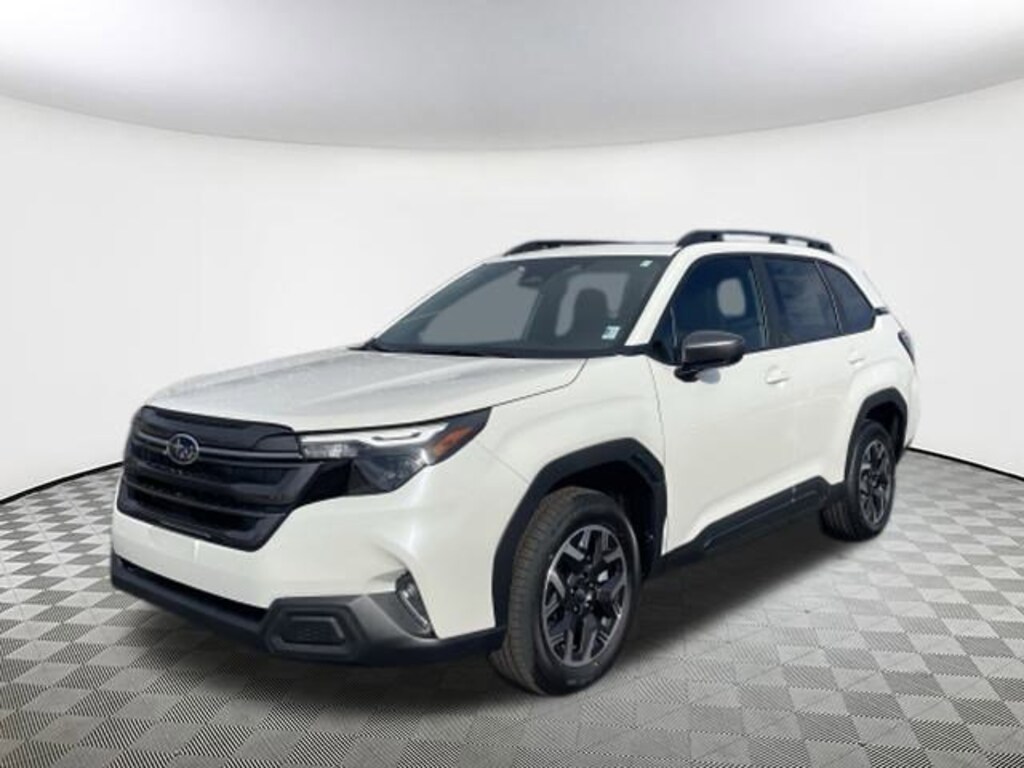 2026 Subaru Forester Premium Crystal White Pearl 4-Wheel Disc Brakes, 6 Speakers, ABS brakes, Air Conditioning, Alloy wheels, AM/FM radio: SiriusXM with 360L, Anti-whiplash front head restraints, Auto High-beam Headlights, Automatic temperature control, Brake assist, Bumpers: body-color, Driver door bin, Driver vanity mirror, Dual front impact airbags, Dual front side impact airbags, Electronic Stability Control, Emergency communication system: MySubaru Companion (5-years free), Exterior Parking Camera Rear, Four wheel independent suspension, Front anti-roll bar, Front Bucket Seats, Front Center Armrest, Front dual zone A/C, Front fog lights, Front reading lights, Fully automatic headlights, Heated door mirrors, Heated Front Bucket Seats, Heated front seats, Illuminated entry, Knee airbag, Leather steering wheel, Low tire pressure warning, Occupant sensing airbag, Outside temperature display, Overhead airbag, Overhead console, Panic alarm, Passenger door bin, Passenger vanity mirror, Power door mirrors, Power driver seat, Power moonroof: Panoramic, Power steering, Power windows, Premium Textured Cloth Upholstery, Radio data system, Radio: Subaru 11.6" Multimedia Plus System, Rear anti-roll bar, Rear seat center armrest, Rear window defroster, Rear window wiper, Remote keyless entry, Security system, Speed control, Speed-sensing steering, Split folding rear seat, Spoiler, Steering wheel mounted audio controls, Tachometer, Telescoping steering wheel, Tilt steering wheel, Traction control, Trip computer, Variably intermittent wipers, Wheels: 17" x 7.0 J Dark Metallic Aluminum-Alloy. AWD Lineartronic CVT 26/33 City/Highway MPG 2.5L 4-Cylinder DOHC 16V