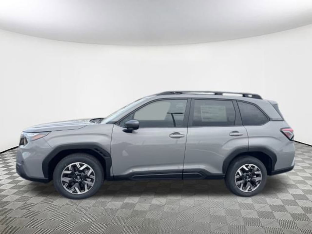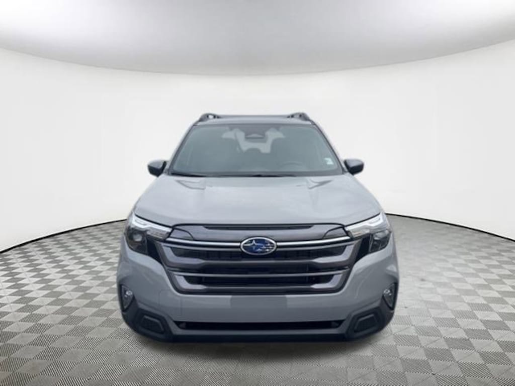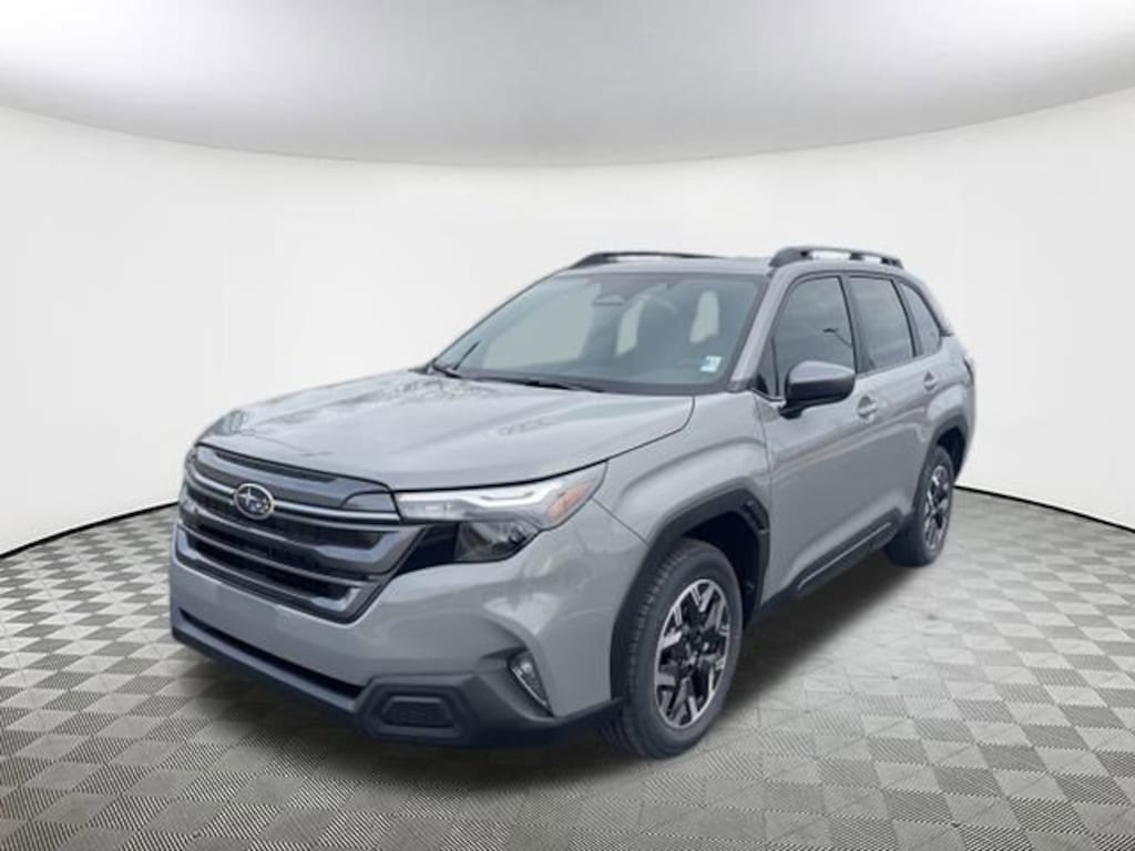 2026 Subaru Forester Premium River Rock Pearl 4-Wheel Disc Brakes, 6 Speakers, ABS brakes, Air Conditioning, Alloy wheels, AM/FM radio: SiriusXM with 360L, Anti-whiplash front head restraints, Auto High-beam Headlights, Automatic temperature control, Brake assist, Bumpers: body-color, Driver door bin, Driver vanity mirror, Dual front impact airbags, Dual front side impact airbags, Electronic Stability Control, Emergency communication system: MySubaru Companion (5-years free), Exterior Parking Camera Rear, Four wheel independent suspension, Front anti-roll bar, Front Bucket Seats, Front Center Armrest, Front dual zone A/C, Front fog lights, Front reading lights, Fully automatic headlights, Heated door mirrors, Heated Front Bucket Seats, Heated front seats, Illuminated entry, Knee airbag, Leather steering wheel, Low tire pressure warning, Occupant sensing airbag, Outside temperature display, Overhead airbag, Overhead console, Panic alarm, Passenger door bin, Passenger vanity mirror, Power door mirrors, Power driver seat, Power moonroof: Panoramic, Power steering, Power windows, Premium Textured Cloth Upholstery, Radio data system, Radio: Subaru 11.6" Multimedia Plus System, Rear anti-roll bar, Rear seat center armrest, Rear window defroster, Rear window wiper, Remote keyless entry, Security system, Speed control, Speed-sensing steering, Split folding rear seat, Spoiler, Steering wheel mounted audio controls, Tachometer, Telescoping steering wheel, Tilt steering wheel, Traction control, Trip computer, Variably intermittent wipers, Wheels: 17" x 7.0 J Dark Metallic Aluminum-Alloy. AWD Lineartronic CVT 26/33 City/Highway MPG 2.5L 4-Cylinder DOHC 16V