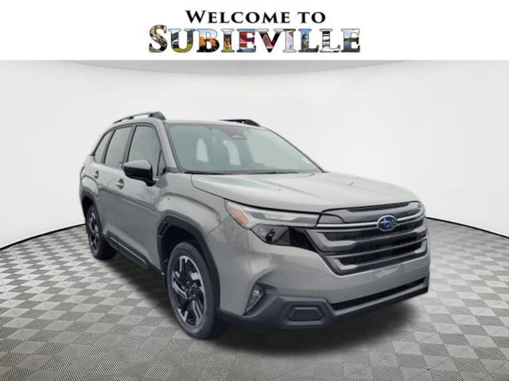 2026 Subaru Forester Limited River Rock 4-Wheel Disc Brakes, 6 Speakers, ABS brakes, Air Conditioning, Alloy wheels, AM/FM radio: SiriusXM with 360L, Anti-whiplash front head restraints, Auto High-beam Headlights, Automatic temperature control, Brake assist, Bumpers: body-color, Driver door bin, Driver vanity mirror, Dual front impact airbags, Dual front side impact airbags, Electronic Stability Control, Emergency communication system: MySubaru Companion (5-years free), Exterior Parking Camera Rear, Four wheel independent suspension, Front anti-roll bar, Front Bucket Seats, Front Center Armrest, Front dual zone A/C, Front fog lights, Front reading lights, Fully automatic headlights, Heated door mirrors, Heated Front Bucket Seats, Heated front seats, Heated steering wheel, Illuminated entry, Knee airbag, Leather steering wheel, Low tire pressure warning, Occupant sensing airbag, Outside temperature display, Overhead airbag, Overhead console, Panic alarm, Passenger door bin, Passenger vanity mirror, Perforated Leather-Trimmed Upholstery, Power door mirrors, Power driver seat, Power Liftgate, Power moonroof: Panoramic, Power passenger seat, Power steering, Power windows, Radio data system, Radio: Subaru 11.6" Multimedia Plus System, Rain sensing wipers, Rear anti-roll bar, Rear seat center armrest, Rear window defroster, Rear window wiper, Remote keyless entry, Security system, Speed control, Speed-sensing steering, Split folding rear seat, Spoiler, Steering wheel mounted audio controls, Tachometer, Telescoping steering wheel, Tilt steering wheel, Traction control, Trip computer, Turn signal indicator mirrors, Variably intermittent wipers, Wheels: 18" x 7.0 J Dark Metallic Aluminum-Alloy. AWD Lineartronic CVT 26/33 City/Highway MPG 2.5L 4-Cylinder DOHC 16V