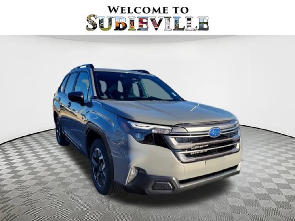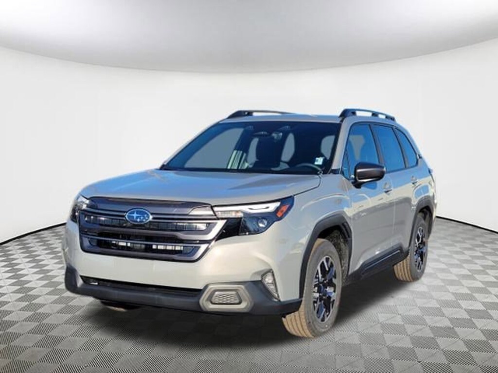 2026 Subaru Forester Premium River Rock Pearl 4-Wheel Disc Brakes, 6 Speakers, ABS brakes, Air Conditioning, Alloy wheels, AM/FM radio: SiriusXM with 360L, Anti-whiplash front head restraints, Auto High-beam Headlights, Automatic temperature control, Brake assist, Bumpers: body-color, Driver door bin, Driver vanity mirror, Dual front impact airbags, Dual front side impact airbags, Electronic Stability Control, Emergency communication system: MySubaru Companion (5-years free), Exterior Parking Camera Rear, Four wheel independent suspension, Front anti-roll bar, Front Bucket Seats, Front Center Armrest, Front dual zone A/C, Front fog lights, Front reading lights, Fully automatic headlights, Heated door mirrors, Heated Front Bucket Seats, Heated front seats, Illuminated entry, Knee airbag, Leather steering wheel, Low tire pressure warning, Occupant sensing airbag, Outside temperature display, Overhead airbag, Overhead console, Panic alarm, Passenger door bin, Passenger vanity mirror, Power door mirrors, Power driver seat, Power moonroof: Panoramic, Power steering, Power windows, Premium Textured Cloth Upholstery, Radio data system, Radio: Subaru 11.6" Multimedia Plus System, Rear anti-roll bar, Rear seat center armrest, Rear window defroster, Rear window wiper, Remote keyless entry, Security system, Speed control, Speed-sensing steering, Split folding rear seat, Spoiler, Steering wheel mounted audio controls, Tachometer, Telescoping steering wheel, Tilt steering wheel, Traction control, Trip computer, Variably intermittent wipers, Wheels: 17" x 7.0 J Dark Metallic Aluminum-Alloy. AWD Lineartronic CVT 26/33 City/Highway MPG 2.5L 4-Cylinder DOHC 16V