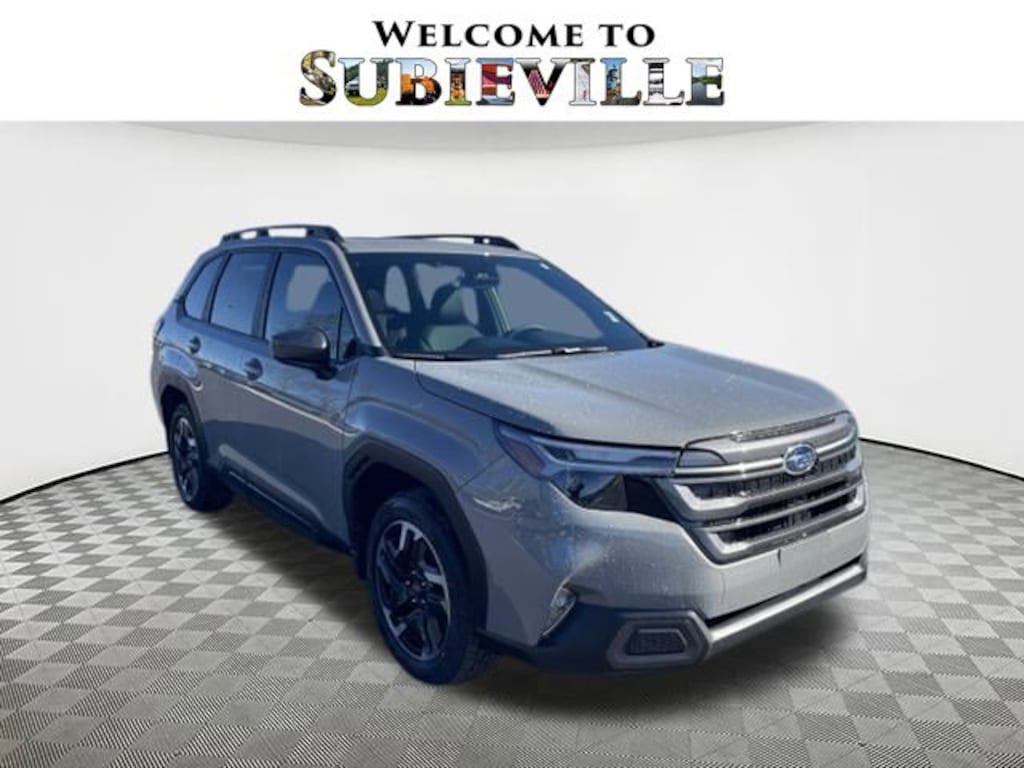 2026 Subaru Forester Limited River Rock Pearl 4-Wheel Disc Brakes, 6 Speakers, ABS brakes, Air Conditioning, Alloy wheels, AM/FM radio: SiriusXM with 360L, Anti-whiplash front head restraints, Auto High-beam Headlights, Automatic temperature control, Brake assist, Bumpers: body-color, Driver door bin, Driver vanity mirror, Dual front impact airbags, Dual front side impact airbags, Electronic Stability Control, Emergency communication system: MySubaru Companion (5-years free), Exterior Parking Camera Rear, Four wheel independent suspension, Front anti-roll bar, Front Bucket Seats, Front Center Armrest, Front dual zone A/C, Front fog lights, Front reading lights, Fully automatic headlights, Heated door mirrors, Heated Front Bucket Seats, Heated front seats, Heated steering wheel, Illuminated entry, Knee airbag, Leather steering wheel, Low tire pressure warning, Occupant sensing airbag, Outside temperature display, Overhead airbag, Overhead console, Panic alarm, Passenger door bin, Passenger vanity mirror, Perforated Leather-Trimmed Upholstery, Power door mirrors, Power driver seat, Power Liftgate, Power moonroof: Panoramic, Power passenger seat, Power steering, Power windows, Radio data system, Radio: Subaru 11.6" Multimedia Plus System, Rain sensing wipers, Rear anti-roll bar, Rear seat center armrest, Rear window defroster, Rear window wiper, Remote keyless entry, Security system, Speed control, Speed-sensing steering, Split folding rear seat, Spoiler, Steering wheel mounted audio controls, Tachometer, Telescoping steering wheel, Tilt steering wheel, Traction control, Trip computer, Turn signal indicator mirrors, Variably intermittent wipers, Wheels: 18" x 7.0 J Dark Metallic Aluminum-Alloy. AWD Lineartronic CVT 26/33 City/Highway MPG 2.5L 4-Cylinder DOHC 16V
