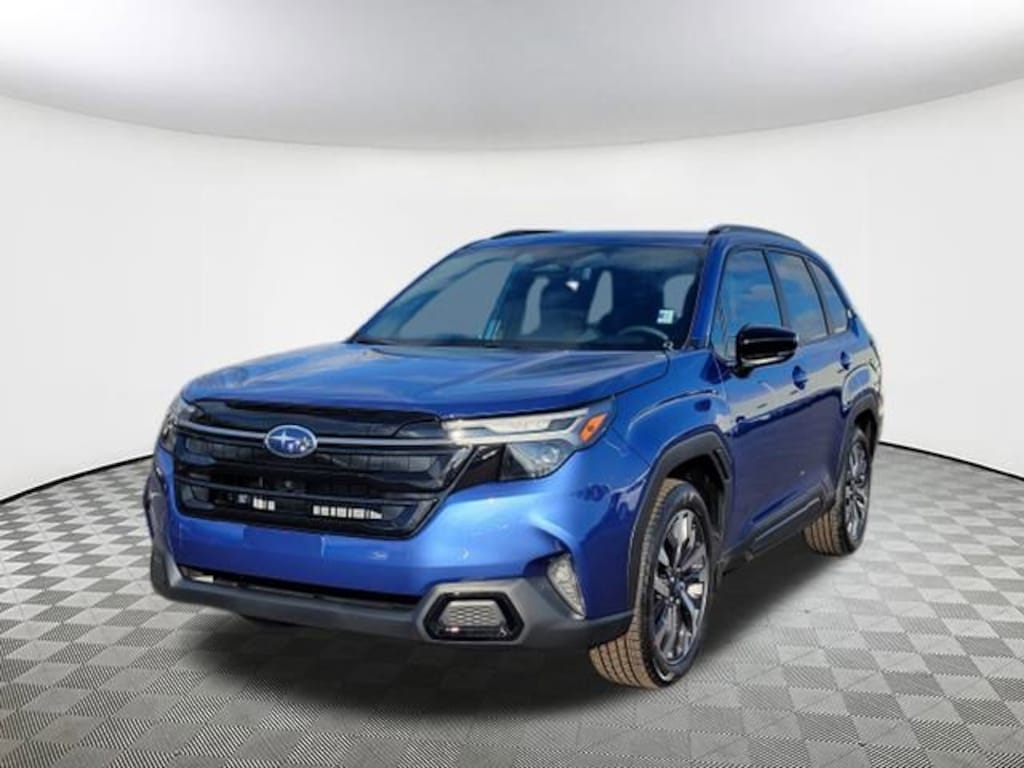 2026 Subaru Forester Touring Daybreak Blue Pearl 11 Speakers, 4-Wheel Disc Brakes, ABS brakes, Air Conditioning, Alloy wheels, AM/FM radio: SiriusXM with 360L, Anti-whiplash front head restraints, Auto High-beam Headlights, Automatic temperature control, Brake assist, Bumpers: body-color, Driver door bin, Driver vanity mirror, Dual front impact airbags, Dual front side impact airbags, Electronic Stability Control, Emergency communication system: MySubaru Companion (5-years free), Exterior Parking Camera Rear, Four wheel independent suspension, Front anti-roll bar, Front Bucket Seats, Front Center Armrest, Front dual zone A/C, Front fog lights, Front reading lights, Fully automatic headlights, harman/kardon® Speakers, Heads-Up Display, Heated and Ventilated Front Bucket Seats, Heated door mirrors, Heated front seats, Heated rear seats, Heated steering wheel, HVAC memory, Illuminated entry, Knee airbag, Leather Shift Knob, Leather steering wheel, Low tire pressure warning, Memory seat, Navigation System, Occupant sensing airbag, Outside temperature display, Overhead airbag, Overhead console, Panic alarm, Passenger door bin, Passenger vanity mirror, Perforated Leather-Trimmed Upholstery, Power door mirrors, Power driver seat, Power Liftgate, Power moonroof: Panoramic, Power passenger seat, Power steering, Power windows, Radio data system, Radio: Subaru 11.6" Multimedia Navigation System, Rain sensing wipers, Rear anti-roll bar, Rear seat center armrest, Rear window defroster, Rear window wiper, Remote keyless entry, Security system, Speed control, Speed-sensing steering, Split folding rear seat, Spoiler, Steering wheel mounted audio controls, Tachometer, Telescoping steering wheel, Tilt steering wheel, Traction control, Trip computer, Turn signal indicator mirrors, Variably intermittent wipers, Ventilated front seats, Wheels: 19" x 7.5 J Dark Gray Aluminum-Alloy. AWD Lineartronic CVT 25/32 City/Highway MPG 2.5L 4-Cylinder DOHC 16V
