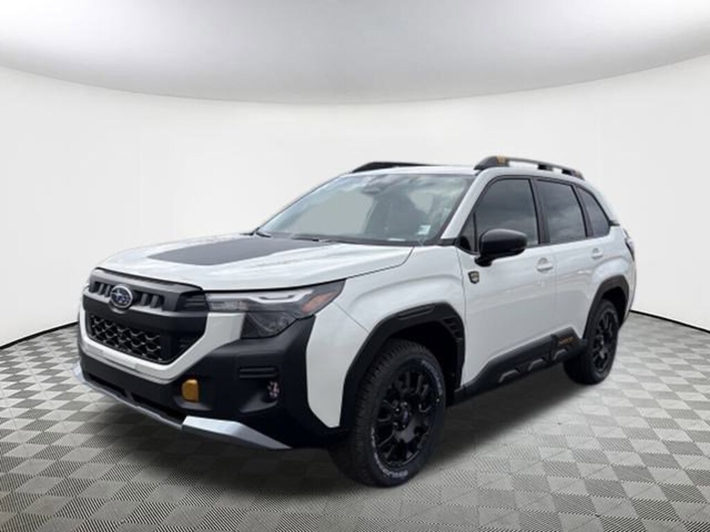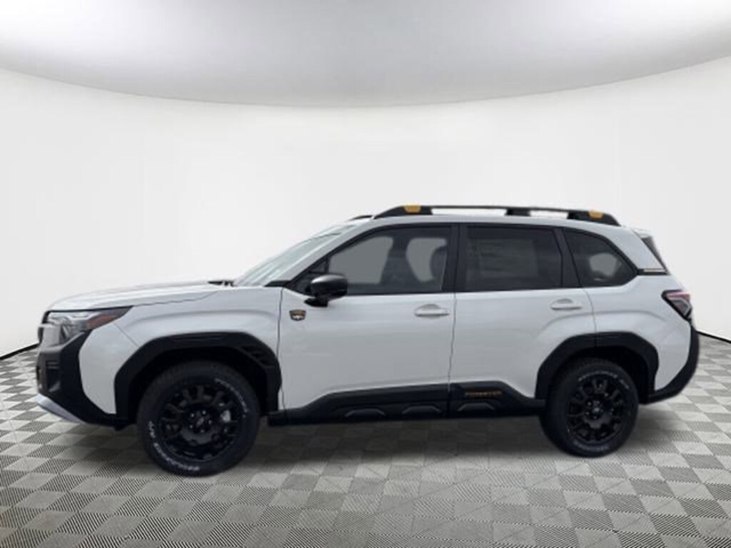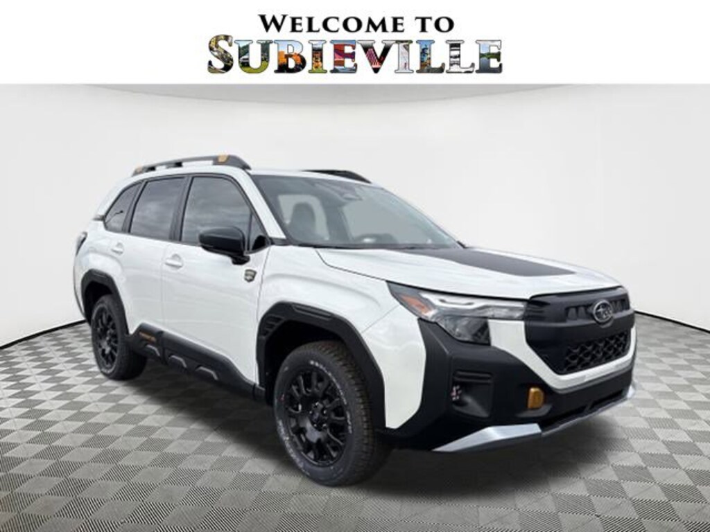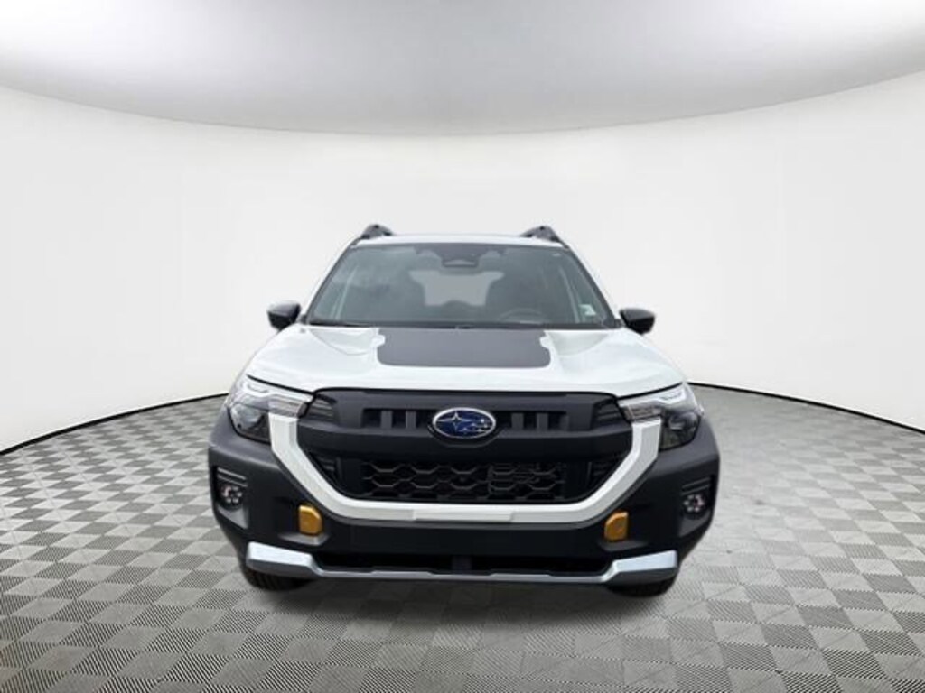 2026 Subaru Forester Wilderness Crystal White Pearl 4-Wheel Disc Brakes, 6 Speakers, ABS brakes, Air Conditioning, Alloy wheels, AM/FM radio: SiriusXM with 360L, Anti-whiplash front head restraints, Auto High-beam Headlights, Auto-Dimming Exterior Mirror with Approach Light, Auto-Dimming Mirror with Compass and HomeLink, Automatic temperature control, Brake assist, Bumpers: body-color, Driver door bin, Driver vanity mirror, Dual front impact airbags, Dual front side impact airbags, Electronic Stability Control, Emergency communication system: MySubaru Companion (5-years free), Exterior Parking Camera Rear, Four wheel independent suspension, Front anti-roll bar, Front Bucket Seats, Front Center Armrest, Front dual zone A/C, Front fog lights, Front reading lights, Fully automatic headlights, Harman/Kardon Speaker System and Power Rear Gate, Heated door mirrors, Heated Front Bucket Seats, Heated front seats, Illuminated entry, Knee airbag, Low tire pressure warning, Occupant sensing airbag, Outside temperature display, Overhead airbag, Overhead console, Panic alarm, Passenger door bin, Passenger vanity mirror, Power door mirrors, Power driver seat, Power moonroof: Panoramic, Power Rear Gate, Power steering, Power windows, Radio data system, Radio: Subaru 11.6" Multimedia Navigation System, Radio: Subaru 11.6" Multimedia Plus System, Rain sensing wipers, Rear anti-roll bar, Rear Bumper Cover, Rear seat center armrest, Rear window defroster, Rear window wiper, Remote keyless entry, Security system, Speed control, Speed-sensing steering, Split folding rear seat, Spoiler, Steering wheel mounted audio controls, Tachometer, Telescoping steering wheel, Textured StarTex Upholstery, Tilt steering wheel, Traction control, Trip computer, Turn signal indicator mirrors, Variably intermittent wipers, Wheels: 17" x 7.0 J Matte Black Finish Aluminum-Alloy, Wilderness Package. AWD Lineartronic CVT 24/28 City/Highway MPG 2.5L 4-Cylinder DOHC 16V