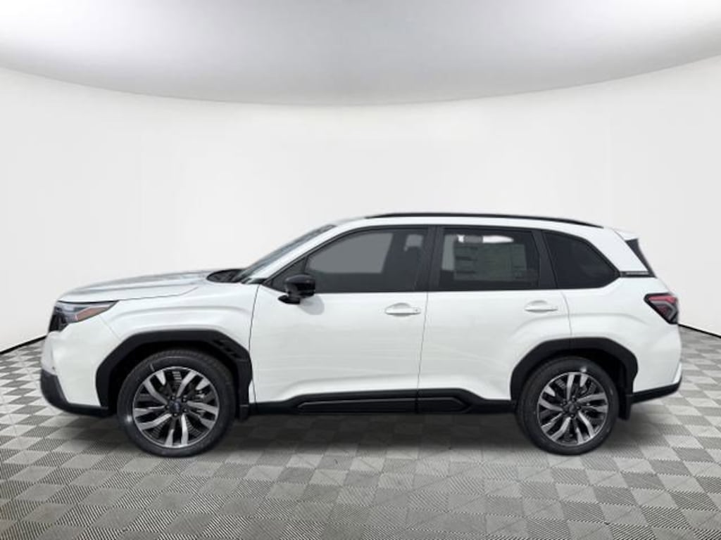 2026 Subaru Forester Touring Crystal White Pearl 11 Speakers, 4-Wheel Disc Brakes, ABS brakes, Air Conditioning, Alloy wheels, AM/FM radio: SiriusXM with 360L, Anti-whiplash front head restraints, Auto High-beam Headlights, Automatic temperature control, Brake assist, Bumpers: body-color, Driver door bin, Driver vanity mirror, Dual front impact airbags, Dual front side impact airbags, Electronic Stability Control, Emergency communication system: MySubaru Companion (5-years free), Exterior Parking Camera Rear, Four wheel independent suspension, Front anti-roll bar, Front Bucket Seats, Front Center Armrest, Front dual zone A/C, Front fog lights, Front reading lights, Fully automatic headlights, harman/kardon® Speakers, Heads-Up Display, Heated and Ventilated Front Bucket Seats, Heated door mirrors, Heated front seats, Heated rear seats, Heated steering wheel, HVAC memory, Illuminated entry, Knee airbag, Leather Shift Knob, Leather steering wheel, Low tire pressure warning, Memory seat, Navigation System, Occupant sensing airbag, Outside temperature display, Overhead airbag, Overhead console, Panic alarm, Passenger door bin, Passenger vanity mirror, Perforated Leather-Trimmed Upholstery, Power door mirrors, Power driver seat, Power Liftgate, Power moonroof: Panoramic, Power passenger seat, Power steering, Power windows, Radio data system, Radio: Subaru 11.6" Multimedia Navigation System, Rain sensing wipers, Rear anti-roll bar, Rear seat center armrest, Rear window defroster, Rear window wiper, Remote keyless entry, Security system, Speed control, Speed-sensing steering, Split folding rear seat, Spoiler, Steering wheel mounted audio controls, Tachometer, Telescoping steering wheel, Tilt steering wheel, Traction control, Trip computer, Turn signal indicator mirrors, Variably intermittent wipers, Ventilated front seats, Wheels: 19" x 7.5 J Dark Gray Aluminum-Alloy. AWD Lineartronic CVT 25/32 City/Highway MPG 2.5L 4-Cylinder DOHC 16V