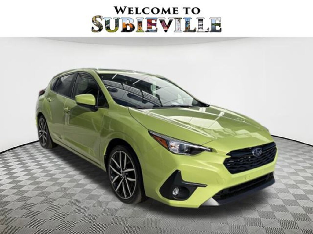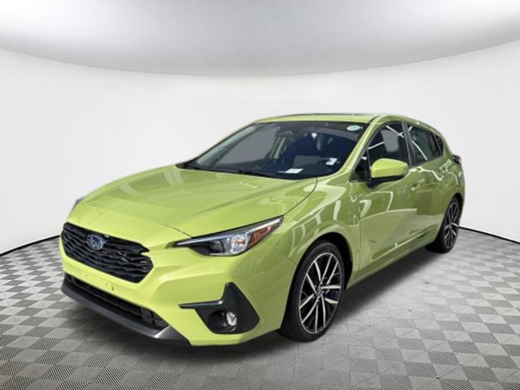 2026 Subaru Impreza Sport Citron Yellow Pearl 4-Wheel Disc Brakes, 6 Speakers, ABS brakes, Air Conditioning, Alloy wheels, AM/FM radio: SiriusXM, Anti-whiplash front head restraints, Auto High-beam Headlights, Automatic temperature control, Brake assist, Bumpers: body-color, Driver door bin, Driver vanity mirror, Dual front impact airbags, Dual front side impact airbags, Electronic Stability Control, Emergency communication system: MySubaru Companion (5-years free), Exterior Parking Camera Rear, Four wheel independent suspension, Front anti-roll bar, Front Bucket Seats, Front Center Armrest, Front dual zone A/C, Front fog lights, Front reading lights, Fully automatic headlights, Illuminated entry, Knee airbag, Low tire pressure warning, Occupant sensing airbag, Outside temperature display, Overhead airbag, Overhead console, Panic alarm, Passenger door bin, Passenger vanity mirror, Power door mirrors, Power steering, Power windows, Radio data system, Radio: Subaru 11.6" Multimedia Plus System, Rear anti-roll bar, Rear seat center armrest, Rear side impact airbag, Rear window defroster, Rear window wiper, Remote keyless entry, Security system, Speed control, Speed-sensing steering, Split folding rear seat, Spoiler, Sport Cloth Upholstery, Steering wheel mounted audio controls, Tachometer, Telescoping steering wheel, Tilt steering wheel, Traction control, Trip computer, Turn signal indicator mirrors, Variably intermittent wipers. AWD CVT Lineartronic 27/33 City/Highway MPG 2.0L DOHC