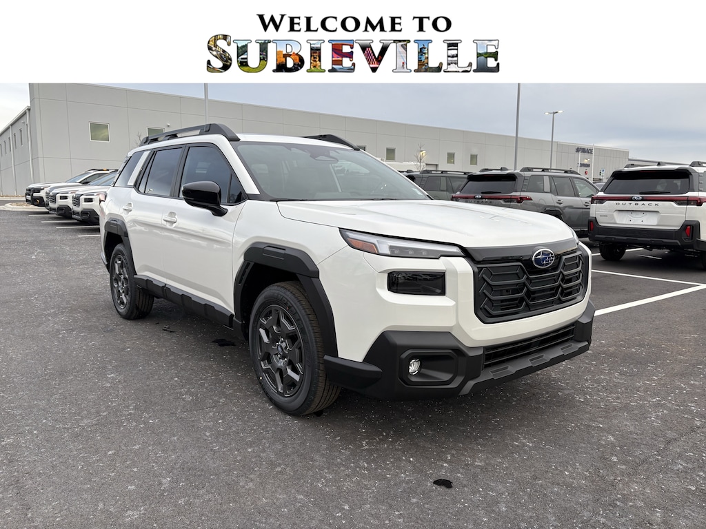 2026 Subaru Outback Premium Crystal White Pearl 4-Wheel Disc Brakes, 6 Speakers, ABS brakes, Air Conditioning, Alloy wheels, AM/FM radio: SiriusXM with 360L, Anti-whiplash front head restraints, Auto High-beam Headlights, Automatic temperature control, Blind Spot Warning, Brake assist, Bumpers: body-color, Driver door bin, Driver vanity mirror, Dual front impact airbags, Dual front side impact airbags, Electronic Stability Control, Emergency communication system: MySubaru Companion (5-years free), Exterior Parking Camera Rear, Four wheel independent suspension, Front anti-roll bar, Front Bucket Seats, Front Center Armrest w/Storage, Front dual zone A/C, Front fog lights, Front reading lights, Fully automatic headlights, Heated door mirrors, Heated Front Bucket Seats, Heated front seats, HVAC memory, Illuminated entry, Knee airbag, Leather steering wheel, Low tire pressure warning, Occupant sensing airbag, Outside temperature display, Overhead airbag, Overhead console, Panic alarm, Passenger door bin, Passenger vanity mirror, Power door mirrors, Power driver seat, Power Liftgate, Power steering, Power windows, Radio: Subaru 12.1" Multimedia System, Rear anti-roll bar, Rear seat center armrest, Rear window defroster, Rear window wiper, Remote keyless entry, Security system, Speed control, Speed-sensing steering, Split folding rear seat, Spoiler, StarTex Upholstery, Steering wheel mounted audio controls, Tachometer, Telescoping steering wheel, Tilt steering wheel, Traction control, Trip computer, Turn signal indicator mirrors, Variably intermittent wipers, Wheels: 18" x 7J Aluminum-Alloy. AWD CVT Lineartronic 25/31 City/Highway MPG 2.5L 4-Cylinder DOHC 16V